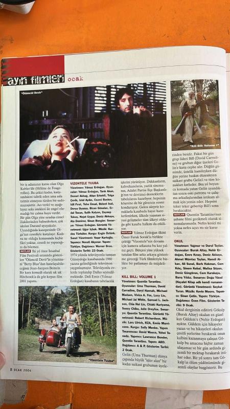 SİNEMA DERGİSİ - OCAK 2004 - YILMAZ ERDOĞAN - TARIK AKAN - DEMET AKBAĞ - ALTAN ERKEKLİ - TOLGA ÇEVİK - ICLAL AYDIN - CEZMI BASKIN - IDIL FIRAT - TUBA ÜNSAL - BÜLENT İNAL - DERYA OYANAY - BICAN GÜNALAN - ERDAL TOSUN - SALİH KALYON - ZEYNEP TOKUŞ - NEJAT UYGUR - DENİZ AKKAYA - ATA DEMİRER - SİNAN BENGIER - BERK HAKMAN - SİNEM KOBAL - MELİSA SÖZEN - BARİŞ YILDIZ - AHMET MÜMTAZ TAYLAN - ALİ SUNAL - DOĞU YÜCEL - JOE DANTE - BRENDAN FRASER - JENNA ELFMAN - STEVE MARTIN - TIMOTHY DALTON - HEATHER LOCKLEAR - JOAN CUSACK - BILL GOLDBERG - ROGER CORMAN - MATTHEW LILLARD - RON PERLMAN - P.J. HOGAN - JASON ISAACS - JEREMY SUMPTER - RACHEL HURD-WOOD - LUDIVINE SAGNIER - OLIVIA WILLIAMS - RICHARD BRIERS - HARRY NEWELL - FREDDIE POPPLEWELL - LYNN REDGRAVE - RUPERT SIMONIAN - HÉLÈNE DE FOUGEROLLES - QUENTIN TARANTINO - UMA THURMAN - DAVID CARRADINE - DARYL HANNAH - MICHAEL MADSEN - VIVICA A. FOX - LUCY LIU - MICHAEL JAI WHITE - SAMUEL L. JACKSON - CHIA HUI LIU - CHIAKI KURIYAMA - SONNY CHI - 114 SAYFA adlı eser Türkçe dilindedir.