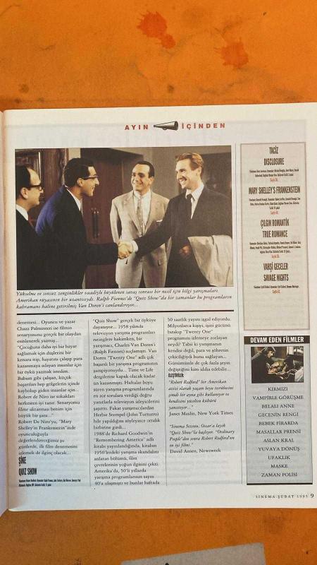 SİNEMA DERGİSİ - ŞUBAT 2005 - RALPH FIENNES - CHRISTIAN SLATER - CANAN GEREDE - HELENA BONHAM - MARISA TOMEI - CYRILL COLLARD - ROBERT BENTON - PAUL NEWMAN - BRUCE WILLIS - MELANIE GRIFFITH - MICHAEL PATRICK CARTER - BRAD - KEVIN - ED HARRIS - RICHARD BENJAMIN - LIAM NEESON - ANDIE MACDOWELL - VIGGO MORTENSEN - CHAZZ PALMINTERI - ROBERT DE NIRO - CHARLES VAN DOREN - HERBIE STEMPEL - JOHN TURTURRO - JANET MASLIN - DAVID ANSEN - JIM CARTER MARY SHELLEY'S FRANKENSTEIN - TACİZ - ÇILGIN ROMANTİK - YIRTICI GECELER - QUIZ SHOW - NOBODY'S FOOL - MILK MONEY - KAHİRE'NİN SIRRI - RUBY CAIRO - SCHINDLER'İN LİSTESİ - BELALI ANNE - MASALLAR PRENSİ - VAMPİRLE GÖRÜŞME - ASLAN KRAL - YUVAYA DÖNÜŞ - UFAKLIK - MASKE - ZAMAN POLISI - 114 SAYFA adlı eser Türkçe dilindedir.
