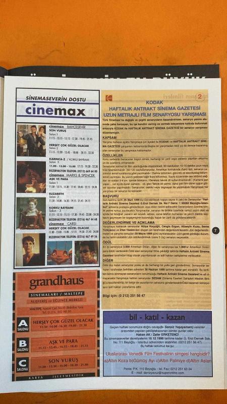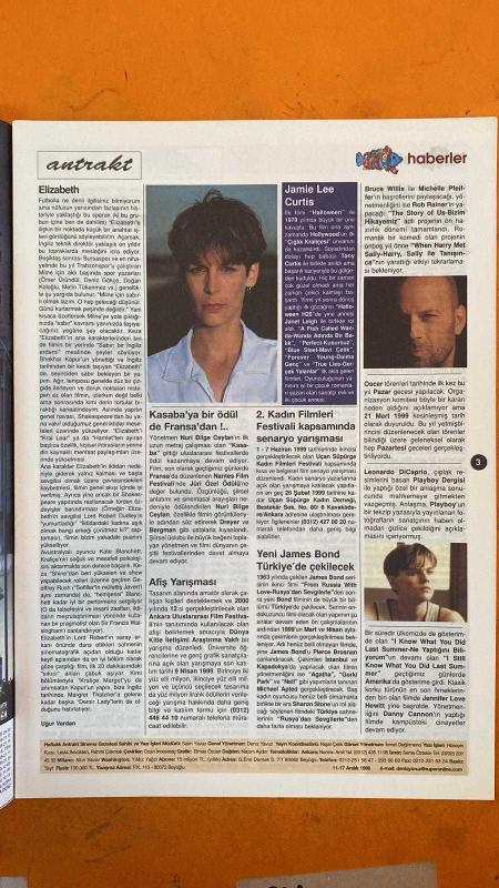 SİNEMA HAFTALIK ANTRAKT DERGİSİ - SAYI : 6 - ROB SCHNEIDER - LELA ROCHON - MICHAEL FITZGERALD WONG - CARMEN LEE - PAUL SORVINO - RON MAEL - RUSSELL MAEL - MAK CHI SIN - JAMES LEUNG - BILL LUI - NANSUN SHI - STEVEN E. DE SOUZA - TSUI HARK - JEAN-CLAUDE VAN DAMME - ILLANA DIAMANT - LAURIS FREEMAN - ARTHUR WONG - RAYMOND FUNG - SHEKHAR KAPUR - KATE BLANCHETT - GEOFFREY RUSH - LORD ROBERT DUDLEY - NURI BILGE CEYLAN - JAMIE LEE CURTIS - TONY CURTIS - JANET LEIGH - MICHAEL APTED - SHARON STONE - PIERCE BROSNAN - BRUCE WILLIS - MICHELLE PFEIFFER - RAINER - LEONARDO DICAPRIO KNOCK OFF - ELIZABETH - KASABA - HALLOWEEN H20 - A FISH CALLED WANDA - PERFECT - BLUE STEEL - FOREVER YOUNG - TRUE LIES - FROM RUSSIA WITH LOVE - THE STORY OF US - WHEN HARRY MET SALLY - I KNOW WHAT YOU DID LAST SUMMER - I STILL KNOW WHAT YOU DID LAST SUMMER JÜRI ÖZEL ÖDÜLÜ KASABA - AFİŞ YARIŞMASI DUYURUSU - 2. KADIN FİLMLERİ FESTİVALİ SENARYO YARIŞMASI - OSCAR TÖRENİ İLK KEZ PAZAR GECESİ - JAMES BOND FİLMİ - 14 SAYFA adlı eser Türkçe dilindedir.