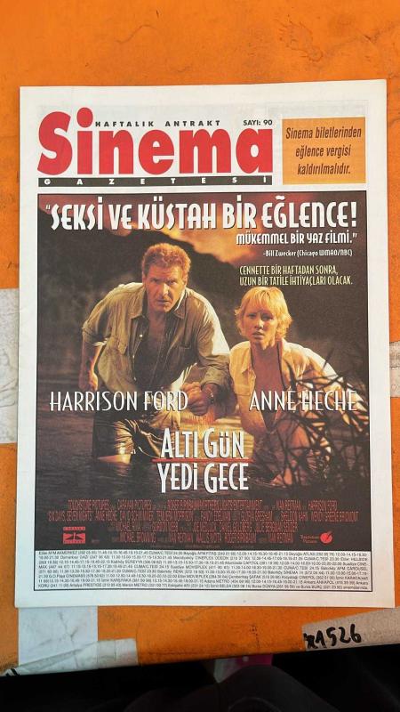 SİNEMA HAFTALIK ANTRAKT DERGİSİ - SAYI : 90 – HARRISON FORD – ANNE HECHE – DAVID SCHWIMMER – TEMUERA MORRISON – JULIE CHRISTIE – NICK NOLTE – JOHNNY LEE MILLER – LARA FLYNN BOYLE – FRANCES O'CONNOR – CHRISTINA ALEXANIAN – GANI ŞAVATA – MINE ÇAYIROĞLU – FİKRET HAKAN – SERMİN KARAALİ – BÜLENT BİLGİÇ – HÜSEYİN ÖZŞAHİN – AHMET KIRAN – BIKET İLHAN – METİN BELGİN – ÜLKÜ KARAOSMANOĞLU – TUNÇ BAŞARAN – AYŞE NİL - ALTI GÜN YEDİ GECE – HARRISON FORD VE ANNE HECHE’Lİ TROPİK MACERA TATLI KAÇAMAKLAR – EVLİLİK ÜZERİNE DİYALOG AĞIRLIKLI BİR DRAM HOLLYWOOD’DA “TEMCİT PİLAVI” GÖSTERİMLERİ – MR. BEAN, OYUN, ROMEO & JULIET FRANCES O’CONNOR PROFİLİ – AVUSTRALYA’DAN YÜKSELEN YETENEK HALEPÇE KATLİAMI BEYAZPERDEDE – “SINIR” FİLMİ VE AŞİRET KATILIMI KAYIKÇI – TÜRK-YUNAN ORTAK YAPIMI, SAĞIR-DİLSİZ BİR GENÇ VE AŞKI KAÇIKLIK DİPLOMASI – AYŞE NİL ROMANINDAN UYARLAMA, ÇEKİMLER TAMAMLANDI - 14 SAYFA adlı eser Türkçe dilindedir.