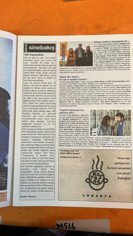 SİNEMA HAFTALIK ANTRAKT DERGİSİ - SAYI : 90 – HARRISON FORD – ANNE HECHE – DAVID SCHWIMMER – TEMUERA MORRISON – JULIE CHRISTIE – NICK NOLTE – JOHNNY LEE MILLER – LARA FLYNN BOYLE – FRANCES O'CONNOR – CHRISTINA ALEXANIAN – GANI ŞAVATA – MINE ÇAYIROĞLU – FİKRET HAKAN – SERMİN KARAALİ – BÜLENT BİLGİÇ – HÜSEYİN ÖZŞAHİN – AHMET KIRAN – BIKET İLHAN – METİN BELGİN – ÜLKÜ KARAOSMANOĞLU – TUNÇ BAŞARAN – AYŞE NİL - ALTI GÜN YEDİ GECE – HARRISON FORD VE ANNE HECHE’Lİ TROPİK MACERA TATLI KAÇAMAKLAR – EVLİLİK ÜZERİNE DİYALOG AĞIRLIKLI BİR DRAM HOLLYWOOD’DA “TEMCİT PİLAVI” GÖSTERİMLERİ – MR. BEAN, OYUN, ROMEO & JULIET FRANCES O’CONNOR PROFİLİ – AVUSTRALYA’DAN YÜKSELEN YETENEK HALEPÇE KATLİAMI BEYAZPERDEDE – “SINIR” FİLMİ VE AŞİRET KATILIMI KAYIKÇI – TÜRK-YUNAN ORTAK YAPIMI, SAĞIR-DİLSİZ BİR GENÇ VE AŞKI KAÇIKLIK DİPLOMASI – AYŞE NİL ROMANINDAN UYARLAMA, ÇEKİMLER TAMAMLANDI - 14 SAYFA adlı eser, Kitap > Süreli Yayınlar > Dergiler > Sanat > Sinema, Radyo, TV kategorisinde İkinci El olarak satıştadır.