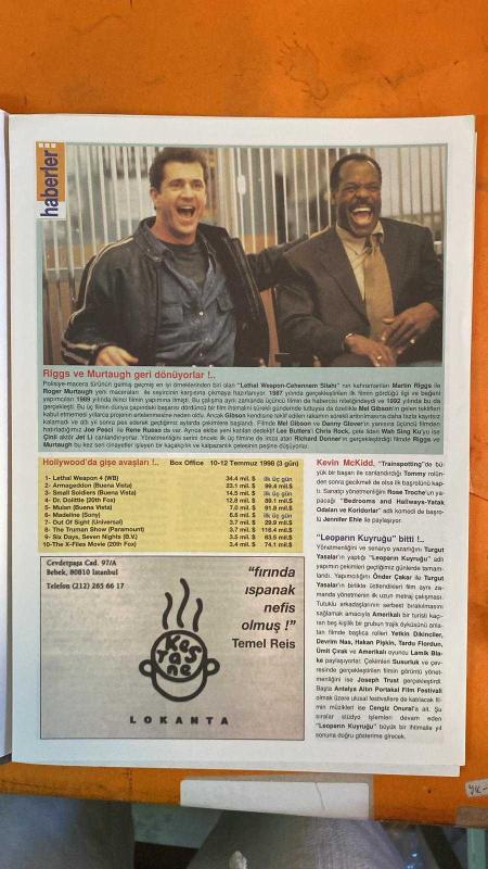 SİNEMA HAFTALIK ANTRAKT DERGİSİ -TEMMUZ 1998 - GARY OLDMAN - BRUCE WILLIS - MILLA JOVOVICH - LUC BESSON - IAN HOLM - CHRIS TUCKER - ERIC SERRA - HANPAUL GAULTIER - MARK STETSON - LAIN SMITH - SYLVIE ANDRA - DAN WEIL - THIERRY ARBOGAST - ROBERT KAMEN - PATRICE LEDOUX - SEMİR ASLANYÜREK - MAHMUT TALİ ÖNGÖREN - ÖZGÜR ŞEYBEN - ZEKİ DEMİRKUBUZ - ATIF YILMAZ - YILDIRIM TÜRKER - MERAL PERİN - AHMET REMZİ AKÇAKAYA - TUNCER KOŞAR - ÇETİN BAŞARAN - JUAN DIEGO BOTTO -THE FIFTH ELEMENT - C BLOK - MASUMİYET - KÖTÜLÜK ÇİÇEKLERİ - CHAMANKA - EN UZUN YOLCULUK - DERİN DARBE - ŞİFRE MERKÜR - CAZCI KARDEŞLER 2000 - EN UZUN YOLCULUK - A STREETCAR NAMED DESIRE - BABA - VIVA ZAPATA - ON THE WATERFRONT - LAST TANGO IN PARIS - DON JUAN DE MARCO - APOCALYPSE NOW - THE SCORE - 14 SAYFA adlı eser Türkçe dilindedir.