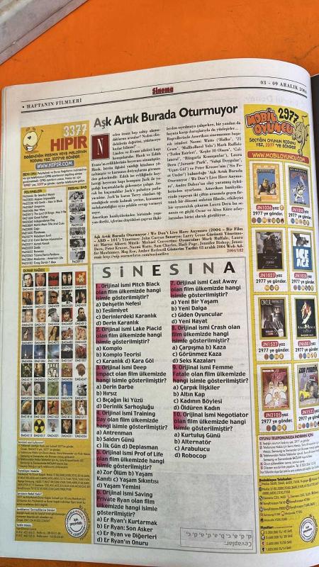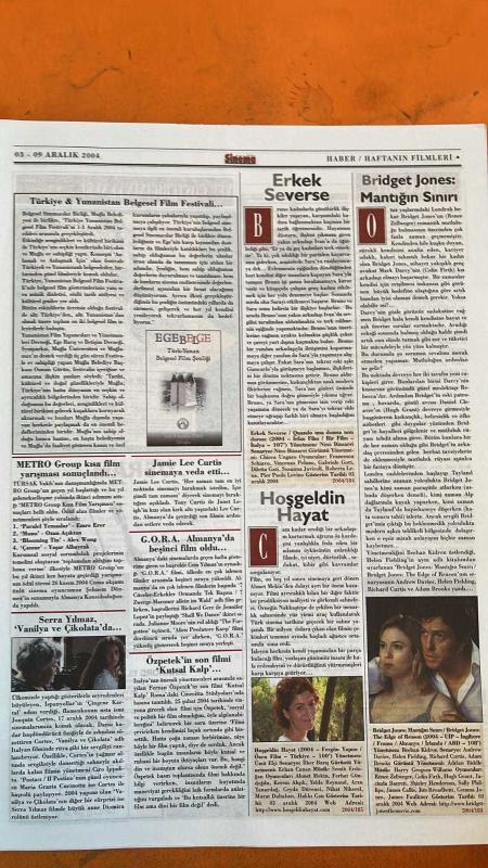 SİNEMA HAFTALIK ANTRAKT GAZETESİ - 03-09 ARALIK 2004 - HÜLYA AVŞAR - HALİL ERGÜN - OKTAY KAYNARCA - BİROL ÜNEL - ZEKİ ALASYA - ALİ ÖZGENTÜRK - CEM YILMAZ - AHMET ULUÇAY - NAOMI WATTS - VIC MIZZY - GONZALO DELGADO - FERNANDO EIMBOKE - MIRELLA PASKUAL - SIMON AKIN - MOHSEN AMIYOUSEFI - MARINA RAZMPEZHKINA - ALEJO HERNAN TAUBE - EZEL AKAY - YILMAZ ERDOĞAN - DURUL TAYLAN - YUMUR TAYLAN - ÖMER VARGI - DERVİŞ ZAİM - FATİH AKIN - GEORGE MILLER - MARSHALL HERSKOVITZ - JOHN DURGAN - MARIA GRAZIA CUCINOTTA - SERRA YILMAZ - CIRO IPPOLITO - ŞEBNEM DÖNMEZ - EMRE ERER - OZAN AÇIKTAN - ALEX WONG - YAŞAR ALBAYRAK - JAMIE LEE CURTIS - TONY CURTIS - JANET LEIGH - RICHARD GERE - JENNIFER LOPEZ - JULIANNE MOORE - FERZAN ÖZPETEK - ÜMİT ELÇİ - AŞK ARTIK BURADA OTURMUYOR - BRIDGET JONES - ANTIGEN - SİNDEL - ERKEK SEVERNE - HOŞGELDEN HAYAT - ÖLÜMCÜL DENEY KIYAMET - KARPUZ KABUĞUNDAN GEMİLER YAPMAK - WHISKY - ÖRDEK AVI - BİR KADINI EŞ OLARAK ALMAK - ACI RÜYA - HASAT ZAMANI - İKİSİNDEN BİRİ - NEREDES - 14 SAYFA