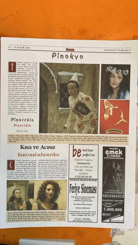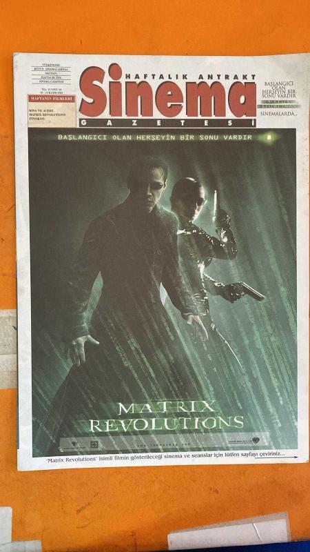 SİNEMA HAFTALIK ANTRAKT GAZETESİ - 07–13 KASIM 2003 - FATİH AKIN – MEHMET KURTULUŞ – ALEKSANDAR JOVANOVIC – ADAM BOUSDOUKOS – REGULA GRAUWILLER – İDİL ÜNER – RALPH HERFORTH – OSCAR O. SÁNCHEZ – MARC HOSEMANN – CEM AKIN – KEANU REEVES – LAURENCE FISHBURNE – CARRIE-ANNE MOSS – HUGO WEAVING – JADA PINKETT SMITH – MARY ALICE – MONICA BELLUCCI – LAMBERT WILSON – HELMUT BAKAITIS – IAN BLISS – COLLIN CHOU – NONA GAYE – HARRY LENNIX – ANNETTE BENING – ROBERTO BENIGNI – NICOLETTA BRASCHI – CARLO GIUFFRÈ – MINO BELLEI – PEPPE BARRA – FRANCO JAVARONE – MAX CAVALLARI – BRUNO ARENA – CORRADO PANI – KIM ROSSI STUART – LUIS MOLTENI - KISA VE ACISIZ – MATRIX REVOLUTIONS – PINOKYO – MATRIX TRILOGY FİNALİ – MATRIX REVOLUTIONS SİNEMA LİSTESİ – MATRIX REVOLUTIONS SEANS BİLGİLERİ – PINOKYO MASALI – MATRIX REVOLUTIONS TEKNİK DETAYLAR – MATRIX REVOLUTIONS OYUNCU KADROSU - 14 SAYFA adlı eser Türkçe dilindedir.
