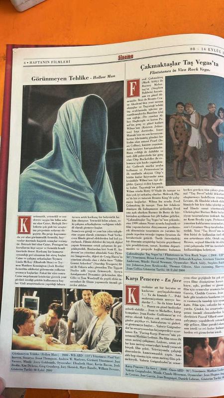 SİNEMA HAFTALIK ANTRAKT GAZETESİ - 08-14 EYLÜL 2000 - ELISABETH SHUE - KEVIN BACON - JOSH BROLIN - KIM DICKENS - GREG GRUNBERG - JOEY SLOTNICK - MARY RANDLE - WILLIAM DEVANE - MARION ROSENBERG - JERRY GOLDSMITH - ELLEN MIROLNICK - SCOTTE ANDERSON - ALEC GILLIS - TOM WOODRUFF JR - MARK GOLDBLATT - ALLAN CAMERON - JOST VACANO - ANDREW W MARLOWE - DOUGLAS WICK - ALAN MARSHALL - PAUL VERHOEVEN - JET LI - AALIYAH - DMX - DESTINY'S CHILD - CHANTE MOORE - GINUWINE - JOE - TIMBALAND - BECK - BLADE - TOLGA YİĞİT - TALAT BULUT - TARIK PABUCCUOĞLU - HANDE ATAİZİ - GÖRÜNMEYEN TEHLİKE - HOLLOW MAN - ROMEO ÖLMELİ - TRY AGAIN - COME BACK IN ONE PIECE - PERFECT MAN - JUMPIN JUMPIN - ROSE IN A CONCRETE WORLD - COME ON - MELEKLER EV - 14 SAYFA adlı eser Türkçe dilindedir.