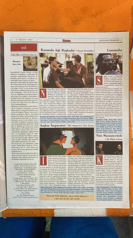 SİNEMA HAFTALIK ANTRAKT GAZETESİ - 11–17 MAYIS 2001 – KEANU REEVES - CHARLIZE THERON - JASON ISAACS - GREG GERMANN - CHRISTOPHER YOUNG - ANNE V. COATES - NAOMI SHOHAN - EDWARD LACHMAN - MARTY EWING - WENDY WANDERMAN - ERWIN STOFF - DEBORAH AAL - STEVEN REUTHER - ELLIOT KASTNER - PAUL YURICKS - KURT VOELKER - PAT O'CONNOR - MURAT ÖZER - SEMIH KAPLANOĞLU - YILMAZ ERDOĞAN - SAVAŞ AY - AHMET ÇADIRCI - SERDAR AKAR - EROL KESKİN - TOLGA ÇEVİK - ANNA BIELSKA - VIRGINIE LEDOYEN - DERVİŞ ZAİM - MUZAFFER HİÇDURMAZ - SAİM YAVUZ - DENİZ YAVUZ - TOLGA AKINCI - HÜSEYİN KUZU - RAHMİ ÇAKMAK - İBRAHİM TÜRK - ORAL KURT - NİHAT DİNDAR - EMİNE KARADAYI - ELMAS ÖZCAN - GÜNEY DİCLE - NERMİN AMİL - A. EFE ÖĞÜTÜCÜ BAŞLIKLAR: KASIMDA AŞK BAŞKADIR - HERKES KENDİ EVİNDE - VIRGINIE LEDOYEN DOSYASI - ULUSLARARASI ÇEVRE FİLMLERİ FESTİVALİ - HALİKARNAS BALIKÇISI KISA FİLM MARATONU - DOĞADAKİ AYAK İZLERİMİZ - TOLGA ÇEVİK SÖYLEŞİSİ - SİNEMA SOKAĞI - SİNEMA EĞİTİMİ VE SEYİRCİ İLİŞKİSİ FİLMLER: SWEET NOVEMB - 14 SAYFA adlı eser Türkçe dilindedir.