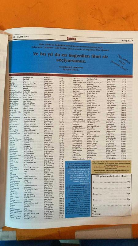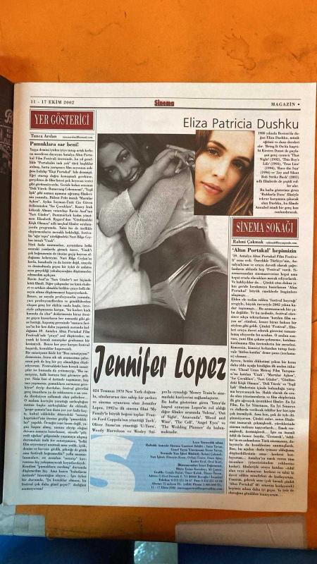 SİNEMA HAFTALIK ANTRAKT GAZETESİ - 17 EKİM 2002 - JENNIFER LOPEZ - ELIZA DUSHKU - KIRSTEN DUNST - NURI BİLGE CEYLAN - BÜLENT PELİT - AYDIN SAYMAN - ÜMİT CİN GÜVEN - RAVİN ASAF - ELISABETH RYGARD - TUNCA ARSLAN - RAHMİ ÇAKMAK- YETER - RUHLARLA DANS - DELİ YÜREK: BUMERANG CEHENNEMİ - YEŞİL IŞIK - MARTILAR AÇKEN - SIR ÇOCUKLARI - SARI GÜNLER - GÖNLÜMDEKİ KÖŞK OLMASA - UZAK - MY FAMILY - JACK - U-TURN - MONEY TRAIN - SELENA - OUT OF SIGHT - ANACONDA - BLOOD AND WINE - THE CELL - ANGEL EYES - THE WEDDING PLANNER - BRING IT ON - THAT NIGHT - THIS BOY'S LIFE - TRUE LIES - RACE THE SUN - JAY AND SILENT BOB STRIKE BACK - 12 SAYFA adlı eser Türkçe dilindedir.