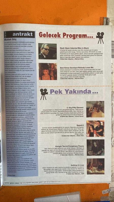 SİNEMA HAFTALIK ANTRAKT GAZETESİ - 26 EYLÜL – 02 EKİM 1997 - KURT RUSSELL - JONATHAN MOSTOW - STOJAN STOCIC - SOFKA - TIM BURTON - GEORGE CLOONEY - JOEL SCHUMACHER - NICOLAS CAGE - KEVIN SMITH - LUC BESSON - BRUCE WILLIS - GARY OLDMAN - MILA JOVOVICH - STEVEN SPIELBERG - WINONA RYDER - ARNOLD SCHWARZENEGGER - TARIK AKAN - ZİŞAN UĞURLU - CÜNEYT GÖKÇER - AHMET MEKİN - SUNA SELEN - JESSICA CAMPBELL - ALİ ÖZGENTÜRK - SADIK KARLI - MİRSAD HEROVİC - ANOUAR BRAHEM - TUZAK - BOZUK KAN - SÜPERMAN & BATMAN - FIFTH ELEMENT - KAYIP DÜNYA JURASSIC PARK - MEKTUP - SÜPERMAN REBOUND - THE LOST WORLD: JURASSIC PARK - BATMAN SERİSİ - SİNEMA KÜLTÜRDÜR - 14 SAYFA adlı eser Türkçe dilindedir.