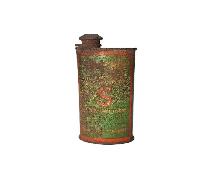 1950-1960'LARDDAN TENEKEDEN MAMÜL SİNGER (SİNGERİN) DİKİŞ MAKİNESİ YAĞI YAĞDANLIĞI. YÜKSEKLİK: 10,3 CM