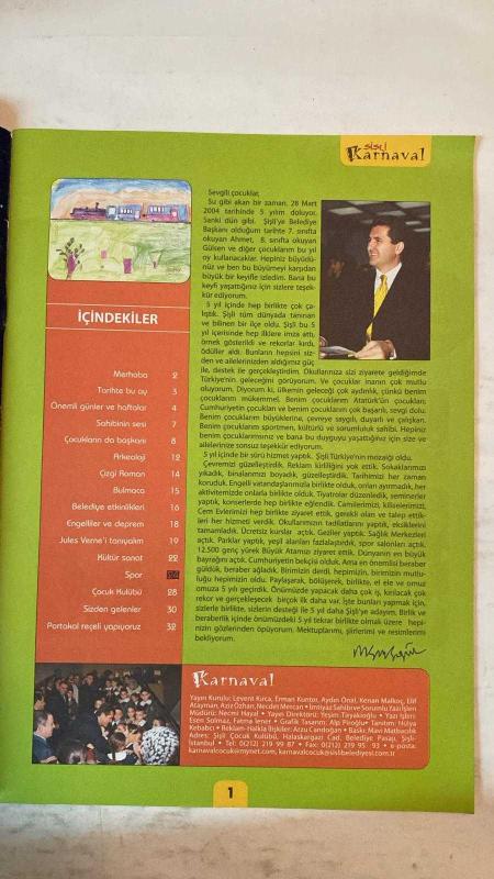 ŞİŞLİ BELEDİYESİ ÇOCUK DERGİSİ - MART 2004 SAYI: 12 MUSTAFA SARIGÜL - AHMET - GÜLSEN - LEVENT KIRCA - ERMAN KUNTER - AYDIN ÖNAL - KENAN MALKOÇ - ELİF ATAYMAN - AZİZ ÖZHAN - NECDET MERCAN - NECMİ HAYAL - YEŞİM TİRYAKİOĞLU - ESEN SOLMAZ - FATMA LENER - ALP PİROĞLU - HÜLYA KEBABCİ - ARZU CANDOĞAN - ATİLLA ERDEMİR GELİŞİM YÖNÜNDE DEĞİŞİM İÇİN BEŞ YIL DAHA ŞİŞLİ’DE SİZLERLE BİRLİKTEYİZ - MERHABA - TARİHTE BU AY - ÖNEMLİ GÜNLER VE HAFTALAR - SAHİBİNİN SESİ - ÇOCUKLARIN DA BAŞKANI - ARKEOLOJİ - ÇİZGİ ROMAN - BULMACA - BELEDİYE ETKİNLİKLERİ - ENGELLİLER VE DEPREM - JULES VERNE’İ TANIYALIM - KÜLTÜR SANAT - SPOR - ÇOCUK KULÜBÜ - SİZDEN GELENLER - PORTAKAL REÇELİ YAPIYORUZ - ÇANAKKALE ZAFERİ - NEVRUZ BAYRAMI - ORMAN HAFTASI - DÜNYA METEOROLOJİ GÜNÜ - DEPREM HAFTASI - DÜNYA KADINLAR GÜNÜ - BİLİM VE TEKNOLOJİ HAFTASI - TAM TAKIM EKSİKSİZ 34 SAYFA adlı eser, Kitap > Süreli Yayınlar > Dergiler > Magazin, Moda kategorisinde İkinci El olarak satıştadır.