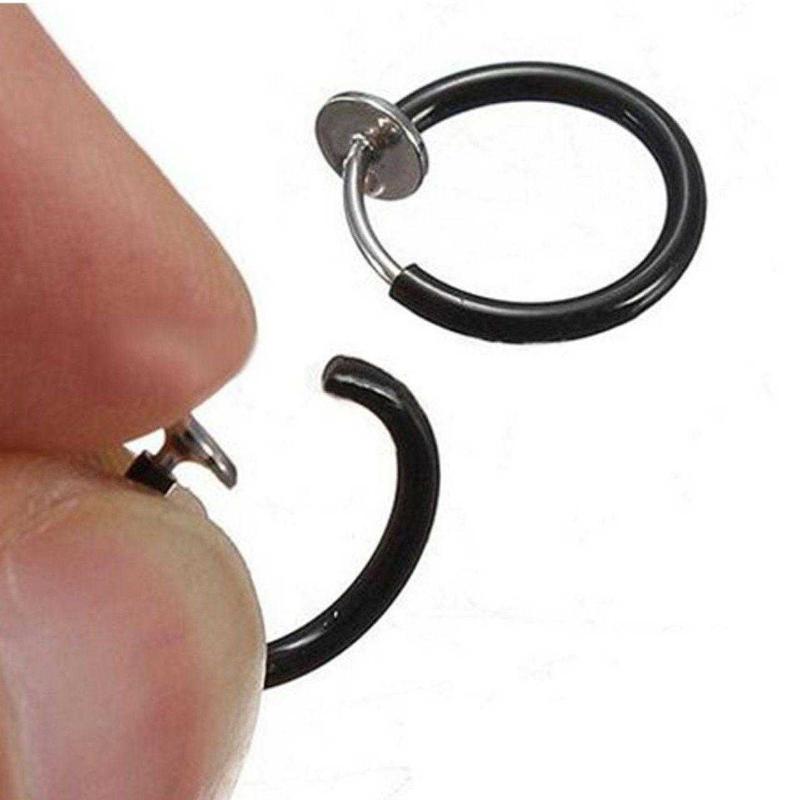 SİYAH YAYLI SIKIŞTIRMA PİERCİNG KÜPE 1 ÇİFT BURUN DUDAK KULAK KIKIRDAK
