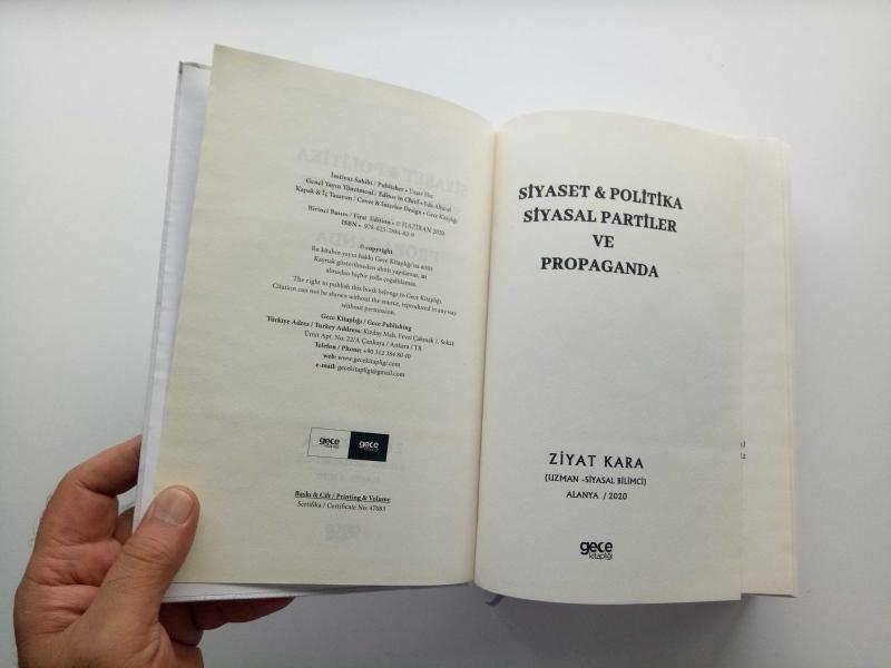 SİYASET & POLİTİKA SİYASAL PARTİLER VE PROPAGANDA (2. EL, CİLTLİ), ZİYAT KARA tarafından kaleme alınmıştır. Eser EDA ALTUNEL editörlüğünde hazırlanmıştır. Kitap 2020 yılında GECE KİTAPLIĞI YAYINLARI tarafından [ANKARA] 978-625-7884-83-9 ISBN kodu ile yayınlanmıştır. Satışta olan kitap, yayınevinin 1. baskısıdır. 834 sayfadır. Sayfa bilgisi 2. HAMUR olarak belirtilmiştir. SİYASET & POLİTİKA SİYASAL PARTİLER VE PROPAGANDA (2. EL, CİLTLİ) adlı eser Türkçe dilindedir.
