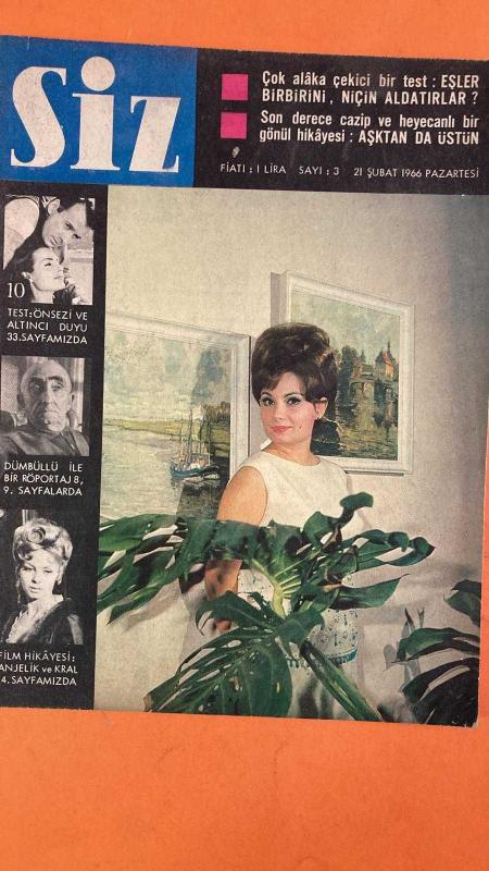 SİZ DERGİSİ - 21 ŞUBAT 1966 KAPAK : AŞKTAN DA ÜSTÜN – EŞLER BİRBİRİNİ NİÇİN ALDATIR – ANJELIK VE KRAL – DÜMBÜLLÜ – VERLAINE – ADLİ MORAN – CAHİT SITKI TARANCI – AYHAN IŞIK – MEMDUH ÜN – FATMA GİRİK – TALAT GÖZBAK – M ALİ AKPINAR – NURLAN SAN – EROL TEZEREN – BİLGE OLGAÇ – PESEN FİLM – SAADETTİN ERBİL – FİGEN SARIER – GÖKSEL ARSOY – SUZAN AVCI – ŞINGIRDAK MELAHAT – ÜLKÜ ERAKALIN – BÜLENT ORAN – GÜNAHKAR KADIN – GINA LOLLOBRIGIDA – BEDİRHAN ÇINAR – KAZIM ERDİNÇ – AYLA - ANGÉLIQUE – MICHELE MERCIER – ROBERT HOSSEIN – SAINT AMON – JOFFREY DE PEYRAC – PHILIPPE DE PLESIS BELLIÉRE – DESGREZ – SAVARY – BAHTİYARF BEY – PRENS RACOCZI – SELMA SANER – WILLIAM DEMENT – THOMAS EDISON – KEKULE – AHMET – SEMRA - 48 SAYFA adlı eser Türkçe dilindedir.
