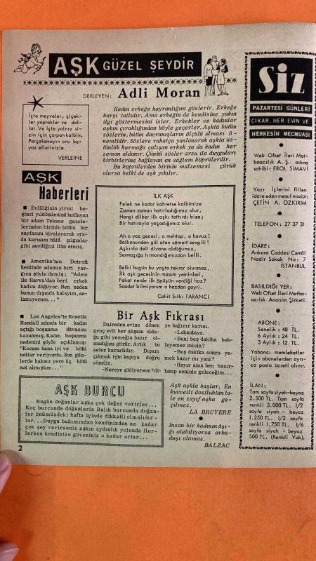 SİZ DERGİSİ - 21 ŞUBAT 1966 KAPAK : AŞKTAN DA ÜSTÜN – EŞLER BİRBİRİNİ NİÇİN ALDATIR – ANJELIK VE KRAL – DÜMBÜLLÜ – VERLAINE – ADLİ MORAN – CAHİT SITKI TARANCI – AYHAN IŞIK – MEMDUH ÜN – FATMA GİRİK – TALAT GÖZBAK – M ALİ AKPINAR – NURLAN SAN – EROL TEZEREN – BİLGE OLGAÇ – PESEN FİLM – SAADETTİN ERBİL – FİGEN SARIER – GÖKSEL ARSOY – SUZAN AVCI – ŞINGIRDAK MELAHAT – ÜLKÜ ERAKALIN – BÜLENT ORAN – GÜNAHKAR KADIN – GINA LOLLOBRIGIDA – BEDİRHAN ÇINAR – KAZIM ERDİNÇ – AYLA - ANGÉLIQUE – MICHELE MERCIER – ROBERT HOSSEIN – SAINT AMON – JOFFREY DE PEYRAC – PHILIPPE DE PLESIS BELLIÉRE – DESGREZ – SAVARY – BAHTİYARF BEY – PRENS RACOCZI – SELMA SANER – WILLIAM DEMENT – THOMAS EDISON – KEKULE – AHMET – SEMRA - 48 SAYFA adlı eser, Kitap > Süreli Yayınlar > Dergiler > Magazin, Moda kategorisinde İkinci El olarak satıştadır.