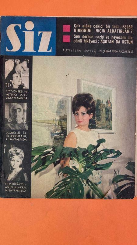 SİZ DERGİSİ - 21 ŞUBAT 1966 KAPAK : EŞLER BİRBİRİNİ NİÇİN ALDATIRLAR – AŞKTAN DA ÜSTÜN – ÖNSEZİ VE ALTINCI DUYU – DÜMBÜLLÜ – ANJELIK VE KRAL – AYHAN IŞIK – MEMDUH ÜN – FATMA GİRİK – TALAT GÖZBAK – M. ALİ AKPINAR – NAMUSUM İÇİN – NURLAN SAN – EROL TEZEREN – BİLGE OLGAÇ – BABASIZ YAŞAYAMAM – ÜÇÜNÜZÜDE MIHLARIM – KRALLAR KRALI – KALDIRIMLAR YANIYOR – NİKAHSIZLAR – PESEN FİLM – SAADETTİN ERBİL – FİGEN SARIER – GÖKSEL ARSOY – SUZAN AVCI – ŞINGIRDAK MELAHAT – ÜLKÜ ERAKALIN – DUYGU FİLM – GÜNAHKAR KADIN – BÜLENT ORAN – GINA LOLLOBRIGIDA – ANJELIK – MICHELE MERCIER – ROBERT HOSSEIN – SAMI FREY – JEAN ROCHEFORT – CLAUDE GIRAUD – JACQUES TOJA – FRED WILLIAMS – JOFFREY DE PEYRAC – BAHTİYARİ BEY – DESGREZ – PLESIS BELLIÈRES – LOUIS XIV – RACOCZI – NİKAH – KADER APARTMANI – KAZIM – AYLA – BEŞİNCİ KAT OLAYI – AŞK CİNAYETLERİ – ÖZGÜR BAR – TALİMHANE – TARLABAŞI – KONYA – SİZ MECMUASI - 48 SAYFA adlı eser Türkçe dilindedir.