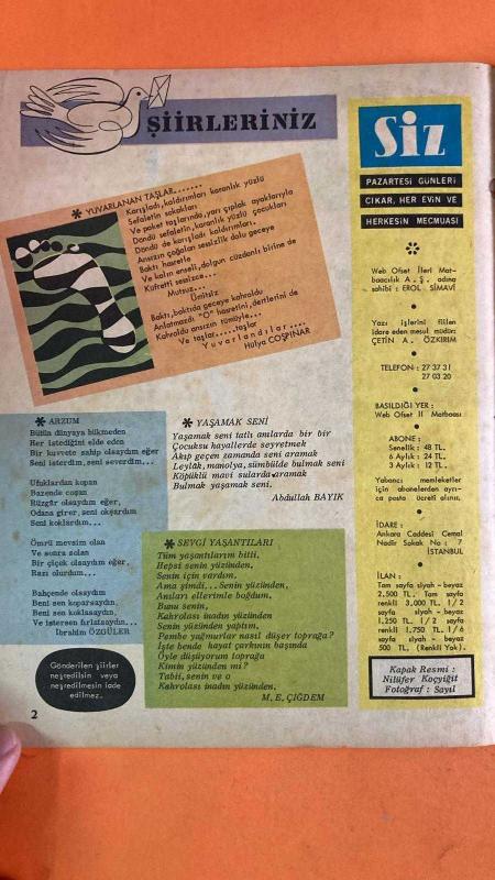 SİZ DERGİSİ - 8 MAYIS 1967 KAPAK : HÜLYA COŞPINAR - İBRAHİM ÖZGÜLER - ABDULLAH BAYIK - M.E. ÇİĞDEM - EROL SİMAVI - ÇETİN A. ÖZKIRIM - NİLÜFER KOÇYİĞİT - HÜLYA FERYAL - MEHMED SEYDA - LOV BENSOY - JEETER LESTER - PEARL LESTER - HEMŞİRE BESSIE - DUDE - ELLIE MAY - ŞİİRLERİNİZ - YUVARLANAN TAŞLAR - ARZUM - YAŞAMAK SENİ - SEVGİ YAŞANTILARI - LOLITA'NIN SABOTAJI - YE-YE VE YEMEK AŞKI - ÜNLÜ ROMANLAR - MEHMED SEYDA - LOV BENSOY - JEETER LESTER - PEARL LESTER - HEMŞİRE BESSIE - DUDE - ELLIE MAY - ADA LESTER - MARY EWING McMANUS - KETLIN - DR. GEORGE G. CHAPMAN - NORMAN McMANUS - URSULA EWING - THE CHAPMAN REPORT - 42 SAYFA adlı eser Türkçe dilindedir.