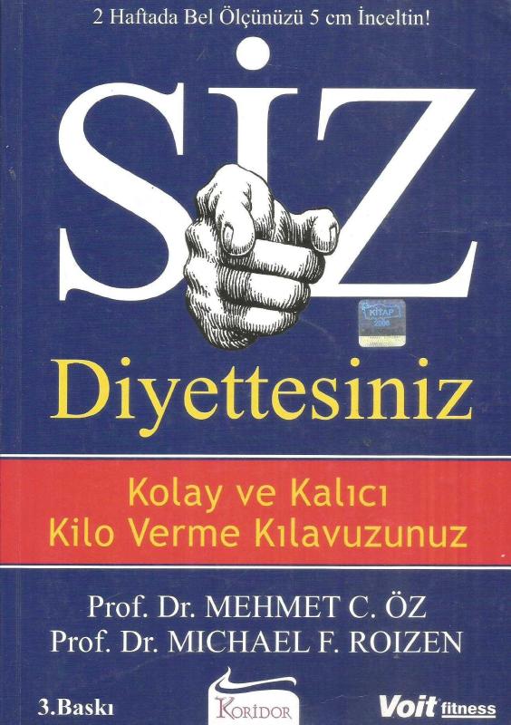 SİZ DİYETTESİNİZ - KOLAY VE KALICI KİLO VERME KILAVUZU (2 HAFTADA BEL ÖLÇÜNÜZÜ 5 CM İNCELTİN!) 3. BASKI, PROFDR. MEHMET C. ÖZ - MICHAEL F. ROIZEN tarafından kaleme alınmıştır. Kitap 2007 yılında KORİDOR YAYINLARI tarafından [İSTANBUL] yayınlanmıştır. 400 sayfadır. SİZ DİYETTESİNİZ - KOLAY VE KALICI KİLO VERME KILAVUZU (2 HAFTADA BEL ÖLÇÜNÜZÜ 5 CM İNCELTİN!) 3. BASKI adlı eser Türkçe dilindedir.