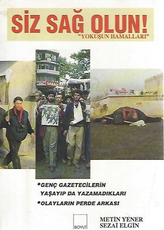 SİZ SAĞ OLUN! - YOKUŞUN HAMALLARI (GENÇ GAZETECİLERİN YAŞAYIP DA YAZAMADIKLARI - OLAYLARIN PERDE ARKASI), METİN YENER & SEZAİ ELGİN tarafından kaleme alınmıştır. Kitap 1992 yılında BOYUT YAYINEVİ tarafından [İSTANBUL] yayınlanmıştır. 163 sayfadır. SİZ SAĞ OLUN! - YOKUŞUN HAMALLARI (GENÇ GAZETECİLERİN YAŞAYIP DA YAZAMADIKLARI - OLAYLARIN PERDE ARKASI) adlı eser Türkçe dilindedir.