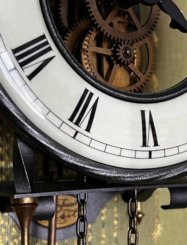 TEMPUS FUGİT MARKA KURMALI PORSELEN KADRANLI VE SAAT BAŞI ZİL ÇALAN SARKAÇLI İSKELET DUVAR SAATİ... BAKIMLARI YAPILMIŞ, ÇALIŞIR DURUMDA MÜKEMMEL BİR DUVAR SAATİ... KADRAN ÇAPI 14 CM DİR.