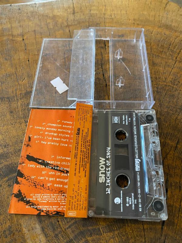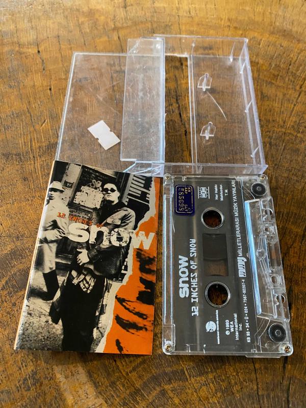 SNOW - 12 INCHES OF SNOW - KASET 1993 - EastWest Records America – 7567-92207-4 - Milletlerarası Müzik Yayınları Ltd. – M477 A1 Runway A2 Champion Sound A3 Lonely Monday Morning A4 Drunken Styles A5 Girl, I've Been Hurt A6 Hey Pretty Love B1 Informer B2 Creative Child B3 Lady With The Red Dress B4 Uhh In You B5 Can't Get Enough B6 Ease Up