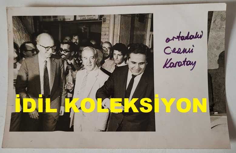 SODEP GENEL BAŞKANLIĞI, MALATYA BELEDİYE BAŞLANLIĞI, TEKİRDAĞ ve GAZİANTEP VALİLİĞİ YAPMIŞ OLAN CEZMİ KARTAY'IN ORİJİNAL AJANS-BASIN FOTOĞRAFI - 11 x 9 cm EBADINDA - CEZMİ KARTAY, ERDAL İNÖNÜ ve ÖMER ATİLA SAV, AYNI KAREDE YER ALIRLARKEN ÇEKİLMİŞ BİR FOTOĞRAF, 28 HAZİRAN 1983, 5 saat önce satışa sunulmuştur.