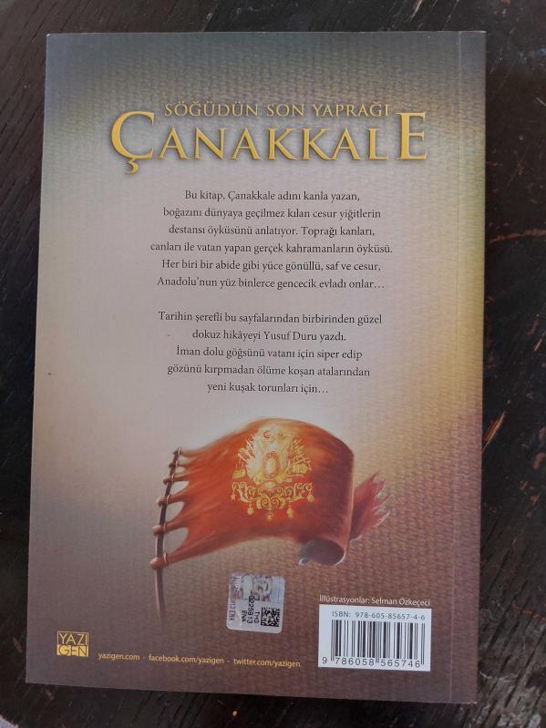 SÖĞÜDÜN SON YAPRAĞI ÇANAKKALE, YUSUF DURU tarafından kaleme alınmıştır. Kitap 2015 yılında YAZIGEN tarafından [İstanbul ] yayınlanmıştır. Satışta olan kitap, yayınevinin 3. baskısıdır. 175 sayfadır. SÖĞÜDÜN SON YAPRAĞI ÇANAKKALE adlı eser Türkçe dilindedir.