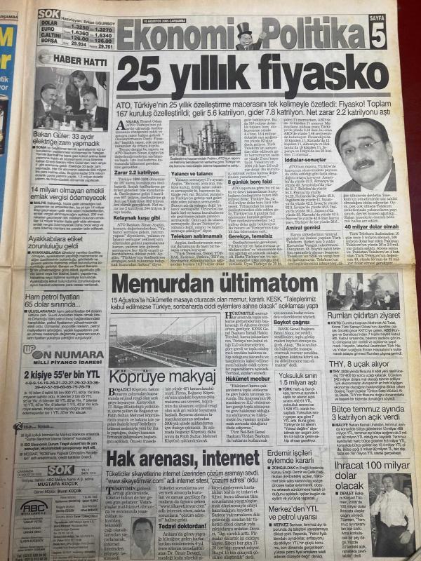 Gazetelerde zamana bağlı sararmalar,kupon kesikleri görülebilir. GAZETE 56x38 EBATINDADIR