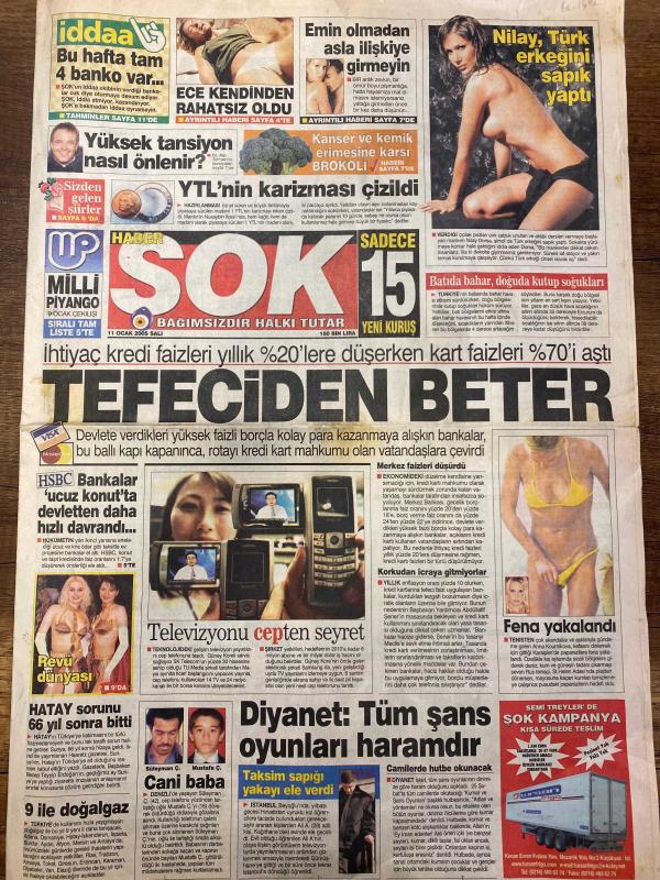 ŞOK GAZETESİ DOĞUM GÜNÜ HEDİYESİ - 11 OCAK 2005 - TAM TAKIM 12 SAYFADIR -Ece-Nilay-Süleyman Cani-Mustafa Cani-Halle Berry-Ahmet Dursun-Turgut Vidinli-Semih Akyüz-Gülşen Bubikoğlu-Türker İnanoğlu-Zeynep İnanoğlu-Sinem-Sinem Güven-Armağan Çağlayan-Kenan-Yahya Demirel-Mehmetçik-Serkan Bayar-Murat İnanç-Alain Clercq-Sergei Areny-Danilo Cataniello-Hz.İsa-Maria Berry-Bosque-Anelka-Ronaldo-Tuncay Şanlı-Aykut Ümit-Yattara-Süreyya Ayhan-Erdem Erdoğan-Hasan Karataş-Brokkoli-Tefeciden beter-Yüksek tansiyon nasıl önlenir-YTL’nin karizması çizildi-Diyanet tüm şans oyunları haramdır-Televizyonu cepten seyret-Canı baba-En gelişmiş il İzmir-Felakete ilahi imza iddiası-Hep böyle olun-Ağır taş-Ahmet Dursun yuvaya dönüyor-Adres başkan-Ümit için son zirve-Göğsümüz kabardı-Bir işe yaramaz-Kim koruyacak-Minibüsçü terörü adlı eser, Kitap > Süreli Yayınlar > Gazeteler > Türkiye > Genel > Günlük kategorisinde İkinci El olarak satıştadır.