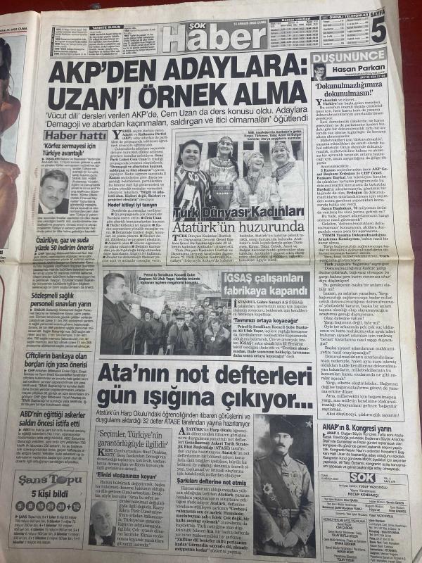 ŞOK GAZETESİ DOĞUM GÜNÜ HEDİYESİ - 12 ARALIK 2003 - TAM TAKIM 12 SAYFADIR -Michael Schumacher-denizcilik sektöründe doping-doğu illerinden kaçırılan çocuklar eğitdikten sonra sokaklara salıyor hırsızlık okulu-Recep Tayyip Erdoğan Avrupa birliğinden tarih isteyecek-Özlem ertem-erkeklerin bayıldığı seks pozisyonları-trilyonlar havaya uçtu-Beşiktaş-Galatasaray-Gençlerbirliği-Gaziantepspor-UEFA’da kura günü-Müjdat Yen‘den bomba gibi açıklama karıma Ajda ile aldattım- bir gün birinin elinde kalacak-Ayşe Hatun Önal-adnan Sezgin-Saddam Hüseyin-aşkları bahane asıl amacı reklam-Kayahan-Ece vahapoğlu-modacı Gülşah-Nefise Karatay-Murat varol-ne yaptım Allah’ım-hakim karşısına çıkan 71 yaşındaki eş katili hüngür hüngür ağladı-kaçağı gece baskını-Jennifer Ringley-gribe kafa tutan tek milleti-Beyonce-Tuncay pası hooijdonktan-ABD ordusunda pembe şok-sarışınların müzikal savaşı-Cameron Diaz-Reede Witherspoon-İhsan Aydın-Lucescu-Daum’un 1 numarası-Nihat erence-Fatih Ürek-Sat köprüsü-AKP’den adaylara-Ab adlı eser, Kitap > Süreli Yayınlar > Gazeteler > Türkiye > Genel > Günlük kategorisinde İkinci El olarak satıştadır.
