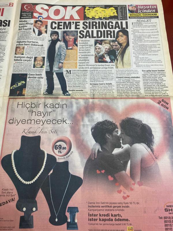 ŞOK GAZETESİ DOĞUM GÜNÜ HEDİYESİ - 12 ŞUBAT 2010 - TAM TAKIM 12 SAYFADIR -Oksan Bayazit-Zeynep Tokus-Engin Temel-Emine Hanım-Abdüllatif Şener-İsmail Polat-Mesut Ekener-Yeşim Kundura-Nilay Dorsa-Lady Gaga-Bilge Tarkan-Ebru Gündeş-Kenan Erçetingöz-Fatih-Ergüder Yoldaş-Burcu Asena-Orhan Gencebay-Kadir İnanır-Önder Bekensir-Demet Akalın-Asena-Nevzat Yalçıntaş-Hulusi Tunca-Pakize Suda-Tayyar Işıksaça-Halit Ergenç-Bergüzar Korel-Tuğba Ekinci-Yavuz Seçkin-Cem Yılmaz-Münevver Karabulut-Cem Garipoğlu-Özge Karabulut-Engin Karabulut-Benguç Özerdem Zeynep Tokus ile ilişkisi vardı-Gelecek yorumunda devrim-Yaşamın şifreleri-Bir kasım tuvalet kağıdımız eksikti-Cem’e şırıngalı saldırı-Emine Hanım GATA’ya gitti-Karşılıklı ihanet boşanmaya sürükledi-İç çamaşırı değil ayakkabı defilesi-RTÜK’ten baldızını hamile bıraktı cezası-Tek rakibim Lady Gaga-Babalar parayı götürdü-Çocuk için Başbakan’dan yardım isteyecek-Asena gözyaşlarına boğuldu-Avrupa Birliği yerine Türk Birliği-Ciciciler devenin neresini yedile adlı eser, Kitap > Süreli Yayınlar > Gazeteler > Türkiye > Genel > Günlük kategorisinde İkinci El olarak satıştadır.