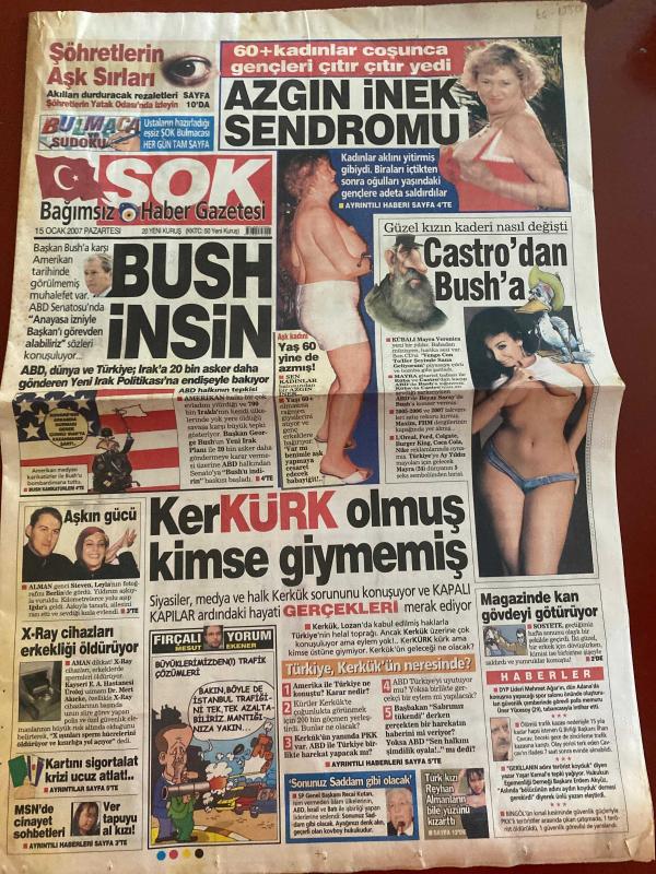 ŞOK GAZETESİ DOĞUM GÜNÜ HEDİYESİ - 15 OCAK 2007 - TAM TAKIM 12 SAYFADIR -George Bush-Fidel Castro-Meryem Uzerli-Reyhan Şahin-Batuhan Karadeniz-Muhammed Batur-Antonella Barba-Umut Eloğlu-Selma Türkeş-Murat Cevahir-Ercan Saatçi-Hülya Avşar-İbrahim Tatlıses-Şahnaz Çakır-Bülent Ersoy-Uğur Dündar-Leyla Gencer-Steven Richter-Zehra Uğur-Abidin Başkan-Burcu Medya-Hüseyin Çelik-Abdüllatif Şener-Abdülaziz Gökçek-Tufan Güner-Zekiye Yüce-Mesut Yılmaz-Gülseren Sabancı-Rıza Çiftçi-Tuncay Şanlı-Ayten Kral-Kenan Evren-Milena Anten-Maria Nine-Milka Anne-Hüseyin Çelik-Rıza Çiftçi-Tuncay Şanlı-Zekiye Yüce-Mesut Yılmaz-Tufan Güner-George Bush-Fidel Castro-Reyhan Şahin-Batuhan Karadeniz-Muhammed Batur-Antonella Barba-Umut Eloğlu-Murat Cevahir-Ercan Saatçi-Hülya Avşar-İbrahim Tatlıses-Şahnaz Çakır-Bülent Ersoy-Uğur Dündar-Leyla Gencer-Steven Richter-Zehra Uğur-Abidin Başkan-Burcu Medya-Abdüllatif Şener-Abdülaziz Gökçek-Gülseren Sabancı-Bush insin-Azgın inek sendromu-Castro’dan Bush’a-KerKÜRK olmuş kimse g adlı eser, Kitap > Süreli Yayınlar > Gazeteler > Türkiye > Genel > Günlük kategorisinde İkinci El olarak satıştadır.