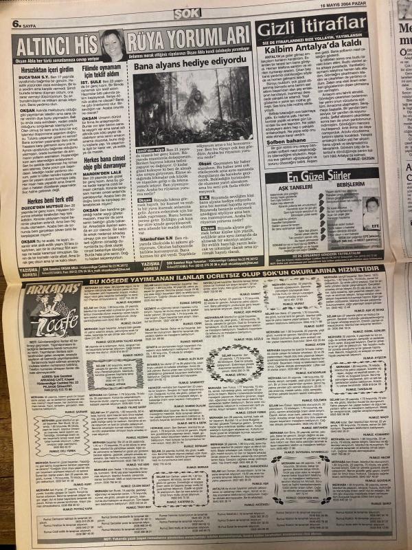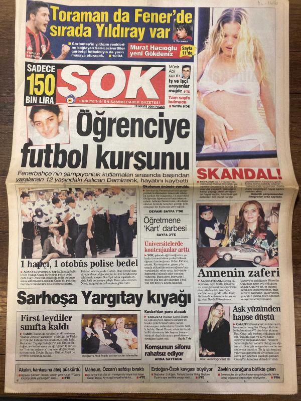 ŞOK GAZETESİ DOĞUM GÜNÜ HEDİYESİ - 16 MAYIS 2004 - TAM TAKIM 12 SAYFADIR -İbrahim Toraman-Yıldıray Baştürk-Murat Hacıoğlu-Van Hooijdonk-Servet Çetin-Demet Akalın-Muammer Baha-Melike Karakaya-Mahsun Kırmızıgül-Özcan Deniz-Sinem Kobal-Özge Özberk-Yaman Adam-Cem Yılmaz-Pınar Altuğ-Tarkan-Demet Şener-Ayşe Hatun Önal-Tuğba Özay-Arto-Ayça Tekindor-Ebru Gündeş-Melike Karakaya-Mustafa Demir-Sennur Birses-Ali Kamer Adır-Fatma Eğitim Parkı-Mahmut Tolu-M. Demir-Sebnem Schaefer-Gökdeniz Karadeniz-Ayşılcan Demirmen-Münir Abi-Filiz C.-Aysu-Eda Ece Toraman da Fener’de sırada Yıldıray var-Öğrenciye futbol kursunu-Sarhoşa Yargıtay kıyağı-First leydiler sınıfta kaldı-Öğretmene ‘Kart’ darbesi-Annenin zaferi-Aşk yüzünden hapse düştü-Komşunun sifonu rahatsız ediyor-Ekvador güzeller sarı-Kaplan’ın yeni rotası Belçika-Yabancı sıkıntısı-Muzzi ısrarı-Cordoba&Giunti gönderiliyor-Yıldıray operasyonu-‘Artık Fenerliyim’-Öğretmene kart oyunu-‘Ben yandım oğlum’-Bayan garsonlar aklandı-Yaşlı adama ‘parmak izi’ tuzağı