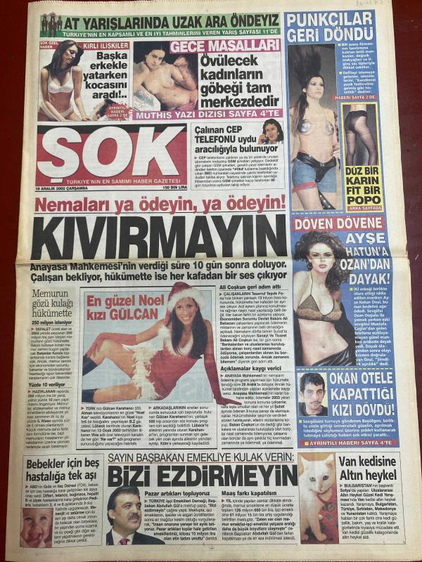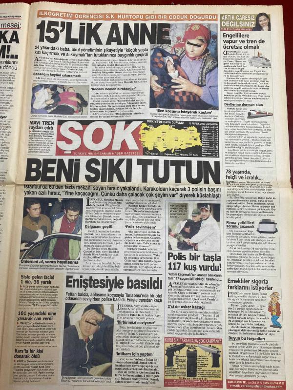 ŞOK GAZETESİ DOĞUM GÜNÜ HEDİYESİ - 18 ARALIK 2002 - TAM TAKIM 12 SAYFADIR -Gülcan Karan-Garce-Ariel Ortega-Murat Didin-Rüştü Reçber-Ali Coşkun-Ersahan Sönmez-Emirkan-Sezen Aksu-Gürkan Uygun-Hasan Parkan-Mustafa Yıldız-Mustafa Yıldızdoğan-Abdüllatif Şener-Noam Chomsky-Bakan Aksit-Mehmet Ağar-Abdullah Gül-İsmail Hakkı Polat-Mustafa Karakaya-Esra Boğazlıyan Kıvırmayın-En güzel Noel kızı Gülcan-Bizi ezdirmeyin-Van kedisine altın heykel-Transfer atağı-Başka kapıya-Şu an yatağımda başka bir erkek var canım-Punkçıların dönüşü-Aşk gemisi gibi-15’lik anne-Beni sıkı tutun-Eniştesiyle basıldı-İşçi emeklisine 2.7 zam önerisi-Irak operasyonu öncesinde Güneydoğu’da durum sakin, Mustafa küçük tarafından kaleme alınmıştır. Kitap ABC Medya Ajansı tarafından yayınlanmıştır. 12 sayfadır. ŞOK GAZETESİ DOĞUM GÜNÜ HEDİYESİ - 18 ARALIK 2002 - TAM TAKIM 12 SAYFADIR -Gülcan Karan-Garce-Ariel Ortega-Murat Didin-Rüştü Reçber-Ali Coşkun-Ersahan Sönmez-Emirkan-Sezen Aksu-Gürkan Uygun-Hasan Parkan-Mustafa Yıldız-Mustafa Yıldızdoğan-Abdüllatif Şener-Noam Chomsky-Bakan Aksit-Mehmet Ağar-Abdullah Gül-İsmail Hakkı Polat-Mustafa Karakaya-Esra Boğazlıyan Kıvırmayın-En güzel Noel kızı Gülcan-Bizi ezdirmeyin-Van kedisine altın heykel-Transfer atağı-Başka kapıya-Şu an yatağımda başka bir erkek var canım-Punkçıların dönüşü-Aşk gemisi gibi-15’lik anne-Beni sıkı tutun-Eniştesiyle basıldı-İşçi emeklisine 2.7 zam önerisi-Irak operasyonu öncesinde Güneydoğu’da durum sakin adlı eser Türkçe dilindedir.