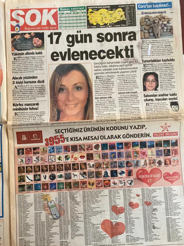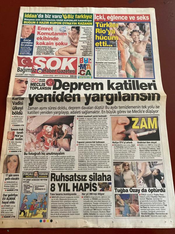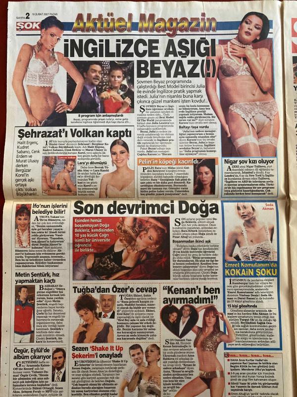 ŞOK GAZETESİ DOĞUM GÜNÜ HEDİYESİ - 18 ŞUBAT 2007 - TAM TAKIM 12 SAYFADIR -Julia Nişnal-Halit Ergenç-Kudret Sabancı-Cenk Ertürk-Murat Uslu-Volkan Korkmaz-Sezen Aksu-Emel Sayın-Fahriye Evcen-Oya Aydoğan-Beren Saat-Tuğba Özay-Tuğba Özerk-Doğa Bekleriz-Seda Akman-Metin Şentürk-Özgür Eylül Ergit-Başak Sayan-Barış Manço-Nazire Nazlı-Hamdi Başaran-Zeynep Değirmencioğlu-Jordan-Fatma Güler-Osman Sali-Yasin Aydın-Hatice Anne-Mustafa Ato-Kemal Unakıtan-Recep Yazıcıoğlu-Edip Başer-Condoleezza Rice-Ali Çubuk-Brooke Burke-Melodiya-Emret Komutanım-Seda Akman-Alex de Souza-Zico-Yıldırım Demirören-Natalia-Stallone-Sebati İskender-Tuğba Özay-Rıza Sarraf-Fatih Kısaparmak-Melike Güler-Viktoria Beckham-David Beckham-Beyazıt Öztürk-Nigar Soyal-Şehrazat-Volkan Karaman-Murat Aşık-Hüseyin Karadayı-Pelin Karahan-Tamer Karadağlı-Hülya Avşar-İbrahim Tatlıses-Rice-Bayram Ali Mutlu-Yamyamdan itiraflar-Bu fuar bir başka-İngilizce aşığı Beyaz-Şehrazat’ı Volkan kaptı-Son devrimci Doğa-17 gün sonra evlenecekti-Dar geli adlı eser, Kitap > Süreli Yayınlar > Gazeteler > Türkiye > Genel > Günlük kategorisinde İkinci El olarak satıştadır.