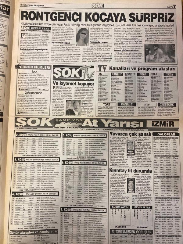 ŞOK GAZETESİ DOĞUM GÜNÜ HEDİYESİ - 19 ŞUBAT 2004 - TAM TAKIM 12 SAYFADIR -Çağla Şikel-Nehir erdoğan-Lara Kamhi-Nigar Talibova-Sibel Kekilli-Lee Seung Yeon-Tuğba-Marilyn Monroe-Sinem Güven-Tülin Çelebi-Izzet Gökbayır-S. Çiftçi-Günay Yıldırım-L. Gökbayır-Mustafa Bozacı-Hüseyin Çelik-Mine Soley-Müslüm Altoklar-Ayerdem Akbaş-Mathieu Carriere-Maria Ahrens-Çağan Irmak-Marie Luise Marjan-Michael Lesch-Mircea Lucescu-Tuncay Şanlı-Mehmet Cansun-Sinân Dağlaroğlu-Erdinç Şehit-Daumsu Bratu-Nihan Yıldırım-Lee Seung Yeong-Ronaldo-Sarah Jane-Sibel Kekilli-Burçin Birean-Hz. İsa-Christopher G. Lee-KRALIÇE LEE SEUNG ülkesinden özür diledi-Hüngür hüngür ağladı-Ahlaksız tebrik-Çok güzel oluyoruz-Örnek yardim-Emanet ikizlere korkunç işkence-Fener ezdi geçti-Sertleşmeye sanal çözüm-En iyiler ödüllendi-Yakılacak fotoğraflar-Sağlık skandalı-Barça peşinde-Hayalim Real Madrid-Katili gördüm-İhaneti canıyla ödedi adlı eser, Kitap > Süreli Yayınlar > Gazeteler > Türkiye > Genel > Günlük kategorisinde İkinci El olarak satıştadır.