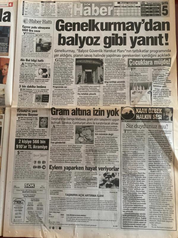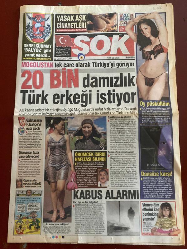 ŞOK GAZETESİ DOĞUM GÜNÜ HEDİYESİ - 22 OCAK 2010 - TAM TAKIM 12 SAYFADIR -Moğolistan tek çare olarak Türkiye’yi görüyor -20.000 damızlık Türk erkeği istiyor-hüsrev tanrıtanır-Mesut ekener-oğlunu altın vuruşla öldürdü-Melisa guti’yi çileden çıkardı-jüriye evcilik kordon fotoğrafını yutturmuş-Yasemin Öztürk-35 yaş farkı aşka engel mi-aldatma patlaması-İsmail Polat-cinsellik dümdüz giden yol değildir- ebru Gündeş-Reza Zarrab-Azeri şarkıcı günel-Nilgün Belgün-Özgün askere gitmeden son klibini çekti-Metin Şentürk-Fulya Şentürk-Burak yeter-tuncel kurtiz-Ramiz dayı-yalancının mumu Kayseri’de söndü-komşusu dede dede taciz etti-karısını arıyor-anneciğim ellerini kes benimkine yapıştır- şarkıcının Nil Karaibrahimgil on yıldır birlikte olduğu sevgilisi Serdar Erener Kahire’de Nil kıyısında evlendi-ejder kapanı görücüye çıktı-Şener Şen-Cem Yılmaz-mahsun Kırmızıgül-FundaArar-Seray Sever-Murat dalkılıç-Ayşe Özyılmazel-genelkurmaydan balyoz gibi yanı-gram altına izin yok-Kaan Özbek halkın sesi-Sultanb adlı eser, Kitap > Süreli Yayınlar > Gazeteler > Türkiye > Genel > Günlük kategorisinde İkinci El olarak satıştadır.