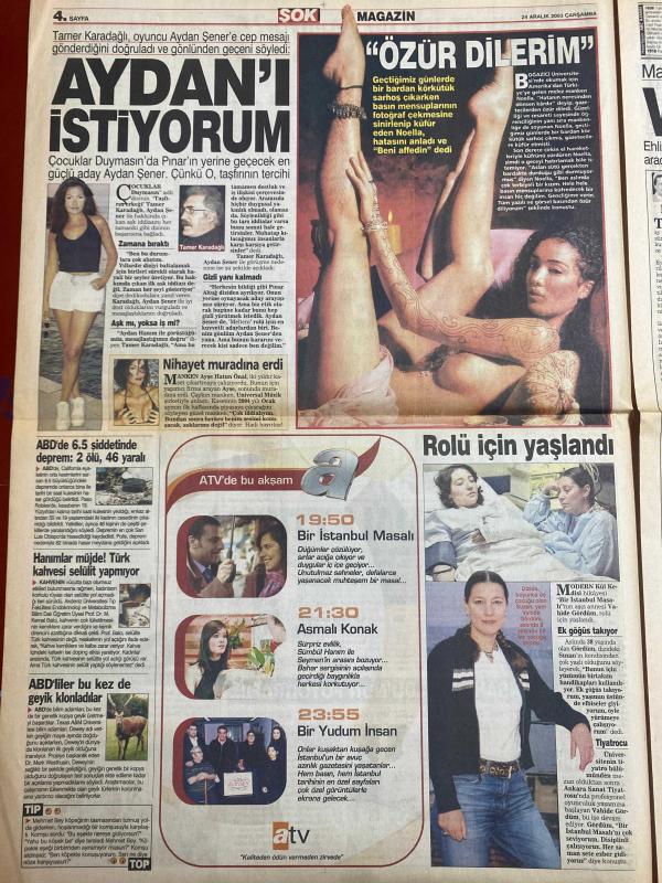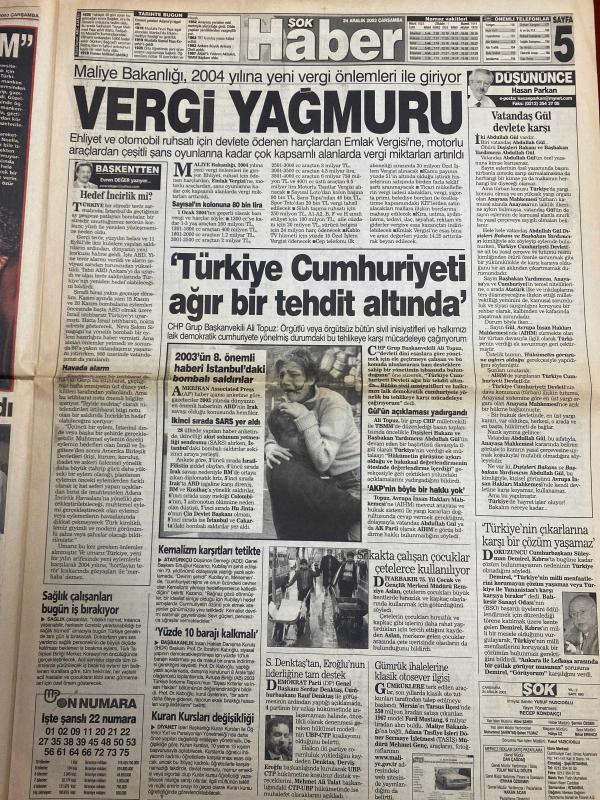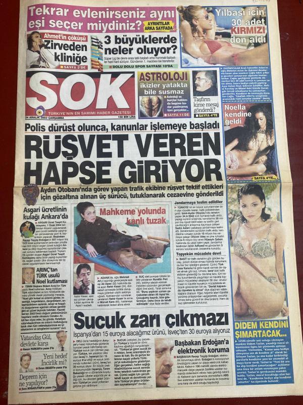 ŞOK GAZETESİ DOĞUM GÜNÜ HEDİYESİ - 24 ARALIK 2003 - TAM TAKIM 12 SAYFADIR -Ahmet Dursun-Ebru Destan-Ebru Şancı-Özlem Yıldız-Senem Schaffer-Mehmet Ali Erbil-Nehir Keser-Nuri Keser-Didem Kınalı-Recep Tayyip Erdoğan-Bülent Arınç-Hasan Parkan-Tamer Karadağlı-Nevra Serezli-Nurettin Vergin-Ali Topuz-S.Denktas-Rauf Denktaş-Vehbi Dinçerler Rüşvet Veren Hapse Giriyor-Sucuk Zarı Çıkmazı-Zirveden Kliniğe-M.Ali Erbil Esirgeme Kurumu-Yaşlı Kurda Yine Genç Sevgili-4 Tiryakiden Biri Sigara Kurbanı-Bu Nasıl Adalettir-Vergi Yağmuru-Türkiye Cumhuriyeti Ağır Bir Tehdit Altında-Deprem İçin Ne Yapılıyor-Didim Kendini Şımartacak-Ariel Ortega Sergen Gibi-Hamit Kavgası-Yıldızlar Taban Yaptı-İ.Mansız’la Sorun Yok, Mustafa küçük tarafından kaleme alınmıştır. Kitap ABC Medya Ajansı tarafından yayınlanmıştır. 12 sayfadır. ŞOK GAZETESİ DOĞUM GÜNÜ HEDİYESİ - 24 ARALIK 2003 - TAM TAKIM 12 SAYFADIR -Ahmet Dursun-Ebru Destan-Ebru Şancı-Özlem Yıldız-Senem Schaffer-Mehmet Ali Erbil-Nehir Keser-Nuri Keser-Didem Kınalı-Recep Tayyip Erdoğan-Bülent Arınç-Hasan Parkan-Tamer Karadağlı-Nevra Serezli-Nurettin Vergin-Ali Topuz-S.Denktas-Rauf Denktaş-Vehbi Dinçerler Rüşvet Veren Hapse Giriyor-Sucuk Zarı Çıkmazı-Zirveden Kliniğe-M.Ali Erbil Esirgeme Kurumu-Yaşlı Kurda Yine Genç Sevgili-4 Tiryakiden Biri Sigara Kurbanı-Bu Nasıl Adalettir-Vergi Yağmuru-Türkiye Cumhuriyeti Ağır Bir Tehdit Altında-Deprem İçin Ne Yapılıyor-Didim Kendini Şımartacak-Ariel Ortega Sergen Gibi-Hamit Kavgası-Yıldızlar Taban Yaptı-İ.Mansız’la Sorun Yok adlı eser Türkçe dilindedir.
