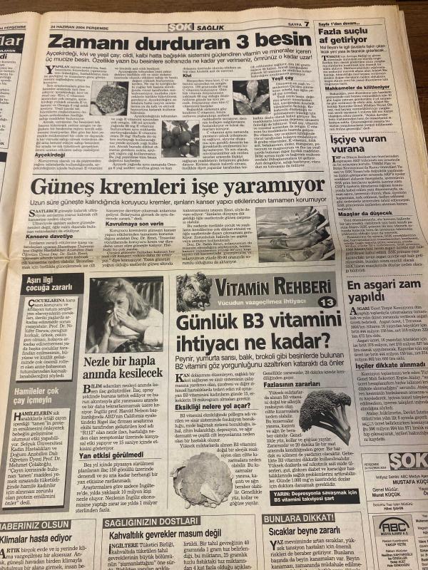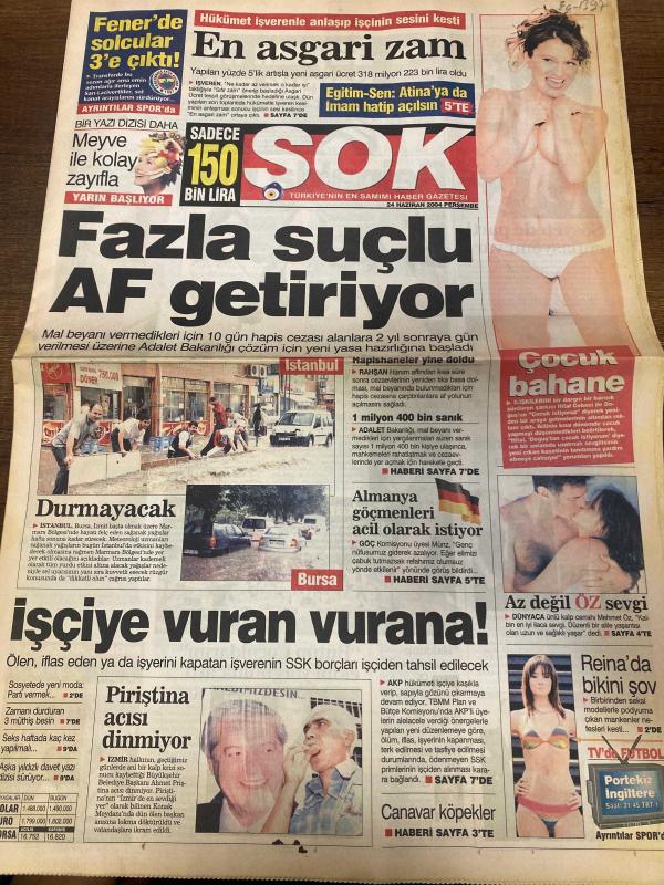 ŞOK GAZETESİ DOĞUM GÜNÜ HEDİYESİ - 24 HAZİRAN 2004 - TAM TAKIM 12 SAYFADIR -Tuncay Şanlı-Can Bartu-Rahşan Hanım-Mehmet Öz-Nazlı Tanrıkulu-Ali Kırca-Ebru Şimşek-Esra Ceyhan-Hülya-Del Bosque-Tarkan-Bayhan-Selçuk Ural-Kadir İnanır-Canan-Levent-Alison Pişkin-Gülben Ergen-Güray-Sadık-Şenur Erol-Mehmet İdil-Tolga-Ziya Yıldırım-Saidou-Kallon-Cabbar Ağa Fazla suçlu AF getiriyor-İşçiye vuran vurana-En asgari zam-Çocuk bahane-Piriştina acısı dinmiyor-Canavar köpekler-Birazcık boydan kısa kız annem-Öğretmenini bıçakladı-Reina’da mayo şov-Bayhan mı Selçuk mu-Tarkan Başkent’i salladı-Bütün Çocuklarım ekibi yorgunluk attı-Alex’i serbest oynatın-İçim yanıyor-Del Bosque gitti geldi-Saidou fırtınası-Kallon sözü-İkisi de elenmeli-Portekiz-İngiltere-Aşık ol çok yaşa-Herkesin bir dizisi var ama benim yok-“A’dan Z’ye” 8 yaşında-Canavar köpekler-Tahtakale iki gün sessiz kalabildi-Şirinler’deki minibüsler bıktırdı-Tramvaylar güzel ama seferleri düzensiz-Virüslerden sonra solucanlar çökertiyor-Devler çevre do adlı eser, Kitap > Süreli Yayınlar > Gazeteler > Türkiye > Genel > Günlük kategorisinde İkinci El olarak satıştadır.