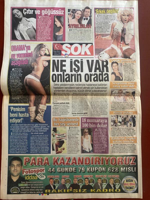 ŞOK GAZETESİ DOĞUM GÜNÜ HEDİYESİ - 25 OCAK 2010 - TAM TAKIM 12 SAYFADIR -Tuğba-Gaye Sökmen-Victoria Beckham-Angelina Jolie-Brad Pitt-Lady Gaga-Deniz Çakır-Sema Öztürk-Cem Davran-Irıska-Hulusi Tunca-Cüppeli Mahsun Hoca-Tuba Büyüküstün-Cansel Elçin-Sinem Kobal-Arda Turan-Oya Başar-Hülya Avşar-Kadir İnanır-Güzide Duran-Beren Saat-Levent Semerci-Nihal Yalçın-Berkcan Güven-Ayça Çağla Altunkaya-Sinem Öztürk-Kenan İmirzalıoğlu-Hülya Avşar-Merve Boluğur-Burcu Kara-Hakan Ural-Gülşen-Mustafa Sandal-Hande Yener-Özgü Namal-Hüseyin Özden-Tuğba Büyüküstün Tüm dersleri 5 yaşamı sıfır-Bu aşklar rol değil gerçek-Filmimizi istismar etti-Krize rağmen ticarete atıldılar-Kimi donar kimi yanar-Bu kalp seni unutur mu-Ne işi var onların orada-Kar tanelerinin sorumlusu benim-Aptal muhabirin yalan bir haberi-Kimi donar kimi yanar-Çarşamba donduracak-Zeynep-Tak-Tak Naci adlı eser, Kitap > Süreli Yayınlar > Gazeteler > Türkiye > Genel > Günlük kategorisinde İkinci El olarak satıştadır.