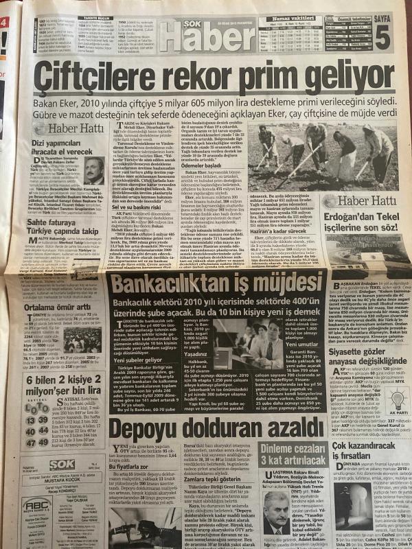 Gazetelerde zamana bağlı sararmalar,kupon kesikleri görülebilir. GAZETE 56x38 EBATINDADIR