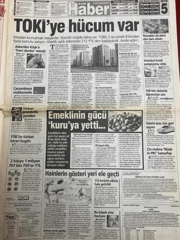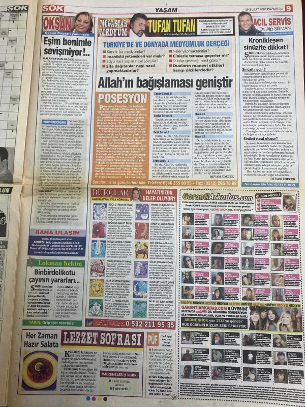 Gazetelerde zamana bağlı sararmalar,kupon kesikleri görülebilir. GAZETE 56x38 EBATINDADIR