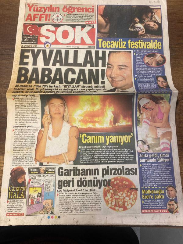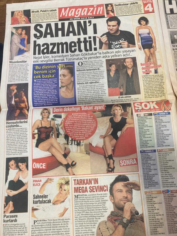 ŞOK GAZETESİ DOĞUM GÜNÜ HEDİYESİ - 26 EKİM 2010 - TAM TAKIM 12 SAYFADIR -Ali Babacan-Gülşah Türk Süreyya-Mustafa Alabora-Cüneyt Arkın-Kenan İmirzalioğlu-Tuğçe Tayfur-Demet Akalın-Almeda Abazi-Nurgül Yeşilçay-Cem Özer-Ece Sükan-Nejat İşler-Şahan Gökbakar-Berrak Tüzünataç-Bengü-Pınar Eliçe-Gülşen-Tarkan-Berat Tüzünataç-Kenan Karaman-Ceyda Düvenci-Mahmut Hızır-Yunus-Özlem Alarağuz-Kaan Özbek-Hasan Parkan-Mehmet Akbaba-Semra Özal Eyvallah Babacan-Vay vay vay affa bak-Edison kıskandı-Hayata bağlandılar-Türkiye Cemaat Cumhuriyeti-Şahan’ı hazmetti-Bu dizinin yeri benim için çok başka-Derin dekolteye ‘Bakan’ ayarı-Tarkan’ın mega sevinci-Canavar hala-Zil zurna yakalandı-Sır ölüm-Malkoçoğlu Ezel’e çaktı-Bebek değil göbek-Hayrola Demet bu ne hal-Köylü kızı olmak istiyor-Bengü’yü duygulandıran hediye-Canım yanıyor-Garibanın pirzolası geri dönüyor-Tecavüz festivalde Fırçalı Mesut-Yorum Kenar adlı eser, Kitap > Süreli Yayınlar > Gazeteler > Türkiye > Genel > Günlük kategorisinde İkinci El olarak satıştadır.