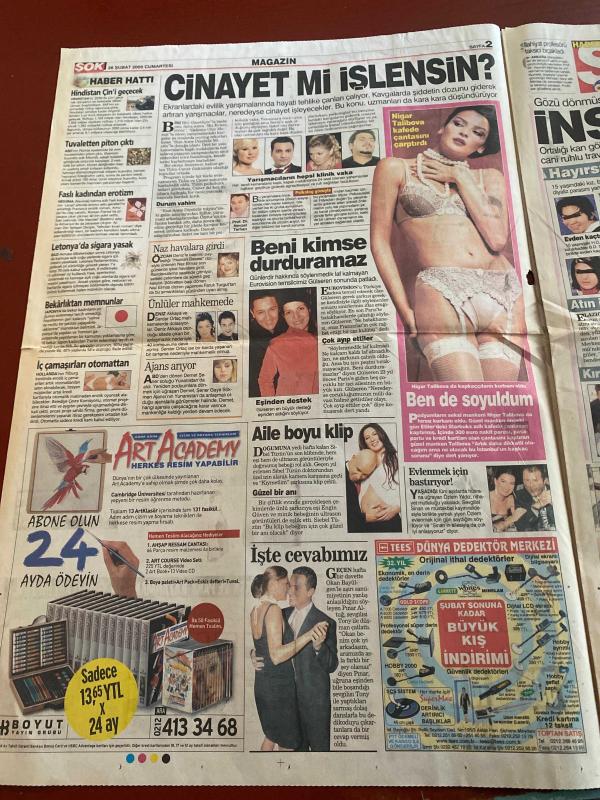 ŞOK GAZETESİ DOĞUM GÜNÜ HEDİYESİ - 26 ŞUBAT 2005 - TAM TAKIM 12 SAYFADIR -Sezen Aksu-Gülben Ergen-Gökhan Özen-Seda Sayan-Umut Akyürek-Okyay Dalgıç-Tarkan-Murat Boz-Hasan Parkan Aslında halk kimi seviyor-Gökhan kokuyor diye Cadillac’ı satıyor-Yollarını ayırdılar-Sırma saçlı Tarkan-Umut’un Bal’ı dünyaya geldi-Artık villanın tek sahibi-Sergi açılışını güzeller yaptı-Uygula çarpılma-Af nasıl işleyecek-Recep Tayyip Erdoğan-Füsun Sayek-Didem Aksu-Gökhan Haniye-Serkan Acar-Hakan Ünsal-Ümit Özat-Fatih Tekke-Nigar Talibova-Gülseren-Hakan Kucan-Sevşu Y.-Şahnaz Yurt-Kenan İmirzalıoğlu-Ayla Dolak-Patricia Black Laf attı hapsi boyladı-Tayyip haklıymış doktorlar acıtıyor-Göğüslerim hariç güzelim-Nazarı bilimsel olarak çözdü-Fener mi tepeledi-Cim-Bom’un solu düştü-Boşlukları doldurun-Cinayet mi işlensin-Beni kimse durduramaz-Ben de soyuldum-İnsan kasabı-Pilavcı mafyası gözlemeci vurdu adlı eser, Kitap > Süreli Yayınlar > Gazeteler > Türkiye > Genel > Günlük kategorisinde İkinci El olarak satıştadır.