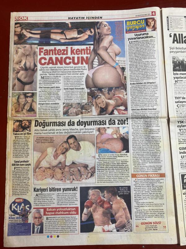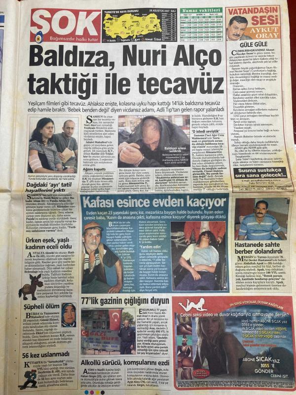 ŞOK GAZETESİ DOĞUM GÜNÜ HEDİYESİ - 28 AĞUSTOS 2007 - TAM TAKIM 12 SAYFADIR -Gülben Ergen-Seren Serengil-Funda Dönmez-Niyazi Bortaçina-Mustafa Sarıgül-Denis Baykal-Hüseyin Avuç-Ronaldinho-Roberto Asis-Abramovich-Lincoln-Tugay Kerimoğlu-Adriano-Jefferson-Sibel Can-Demet Akalın-Güzide Duran-Gülben Ergen-Rafet El Roman-İzel-Bülent Ersoy-Mustafa Keser-Nuri Alço-Aykut Oray-Gülay Sezer-Şakir Süter-Tevfik Diker DP’nin Başında Kim Olsun-Sosyetedе AIDS Paniği-Bir Geldi Pir Geldi-Allah’ını Seversen Git-Boğaz’da 125 Milyon Euroluk Pazarlık-Kırılma Noktası-Lincoln’e Özel Tezahürat-Tugay Paylaşılmıyor-Adriano Direniyor-Jefferson Uçuyor-Sibel Can’ın Gelin Adayları-Ben Kötüyüm Sen İyi Mi-Ben Lezbiyen Değilim-Hoca Diva’ya Müzik Dersi Verdi-Baldıza Nuri Alço Taktiğiyle Tecavüz-Kafası Esince Evden Kaçıyor-Alkollü Sürücü Komşularını Ezdi-Allah’ını Seviyorsan Git-Gül’e Köşk Yolu Bugün-Şaşırtan Seçim Sonucunu Türkiye’ye Şok Duyurdu-20 Bin YTL’lik Lüks Otolar-Sakir Süter’i Kaybettik, Mustafa küçük tarafından kaleme alınmıştır. Kitap ABC Medya Ajansı tarafından yayınlanmıştır. 12 sayfadır. ŞOK GAZETESİ DOĞUM GÜNÜ HEDİYESİ - 28 AĞUSTOS 2007 - TAM TAKIM 12 SAYFADIR -Gülben Ergen-Seren Serengil-Funda Dönmez-Niyazi Bortaçina-Mustafa Sarıgül-Denis Baykal-Hüseyin Avuç-Ronaldinho-Roberto Asis-Abramovich-Lincoln-Tugay Kerimoğlu-Adriano-Jefferson-Sibel Can-Demet Akalın-Güzide Duran-Gülben Ergen-Rafet El Roman-İzel-Bülent Ersoy-Mustafa Keser-Nuri Alço-Aykut Oray-Gülay Sezer-Şakir Süter-Tevfik Diker DP’nin Başında Kim Olsun-Sosyetedе AIDS Paniği-Bir Geldi Pir Geldi-Allah’ını Seversen Git-Boğaz’da 125 Milyon Euroluk Pazarlık-Kırılma Noktası-Lincoln’e Özel Tezahürat-Tugay Paylaşılmıyor-Adriano Direniyor-Jefferson Uçuyor-Sibel Can’ın Gelin Adayları-Ben Kötüyüm Sen İyi Mi-Ben Lezbiyen Değilim-Hoca Diva’ya Müzik Dersi Verdi-Baldıza Nuri Alço Taktiğiyle Tecavüz-Kafası Esince Evden Kaçıyor-Alkollü Sürücü Komşularını Ezdi-Allah’ını Seviyorsan Git-Gül’e Köşk Yolu Bugün-Şaşırtan Seçim Sonucunu Türkiye’ye Şok Duyurdu-20 Bin YTL’lik Lüks Otolar-Sakir Süter’i Kaybettik adlı eser Türkçe dilindedir.
