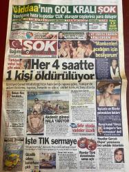 ŞOK GAZETESİ DOĞUM GÜNÜ HEDİYESİ - 28 KASIM 2006 - TAM TAKIM 12 SAYFADIR -Hakan Tankut-Anna Babkova-Tuğba Özay-Yılmaz Erdoğan-Haluk Levent-Mustafa Erdoğan-Gülben Ergen-Sarıgül Dilek-Yıldız Tilbe-Sezen Aksu-Siren Ertan-Ralf Temam-Ayşe Sılay-Fato-Ayşegül Yalçın-Ersin Tilki-Hatice Topuzelli-Boyge Gürkey Her 4 saatte 1 kişi öldürülüyor-Mankenleri acıdığım için besliyorum-Ayılarla filllerle yatmaktan bıktım-Sen uçmuşsun Yılmaz-Türkiye vahşi batı gibi oldu-Akdeniz güneşi hala yakıyor-İşte TIK sermaye-Hangi kanal Yılmaz Erdoğan’a Sen uçmuşsun dedi-Rum ne yapacağını şaşırdı Türk domatesine savaş açtı-Soyunmayı seviyor-Elbise aynı numaralı farklı-Heves hırkalarla yer değiştirdi-Erotik takvimli yardım-Yakarım ben bu otomobili-Amâ koca eşini satırla doğradı-Makyajlı kumarhane-Otomobil şimdi alınır-Ortalık kızıştı-Yıldız adayları adlı eser, Kitap > Süreli Yayınlar > Gazeteler > Türkiye > Genel > Günlük kategorisinde İkinci El olarak satıştadır.