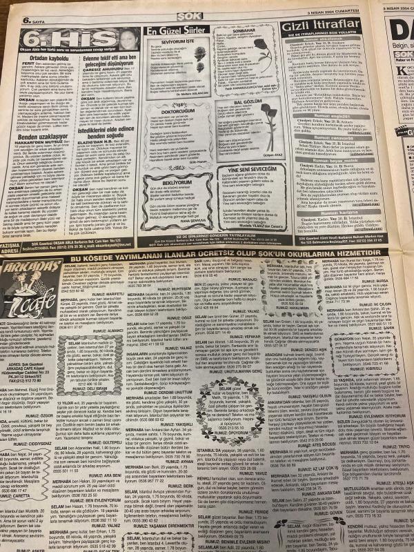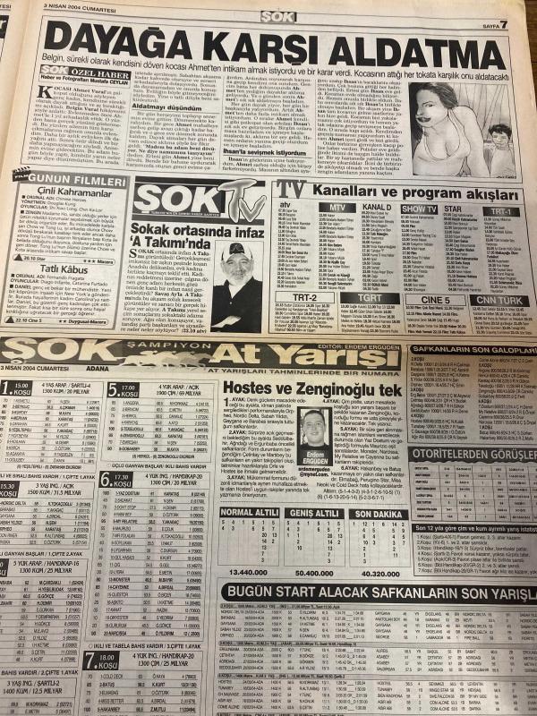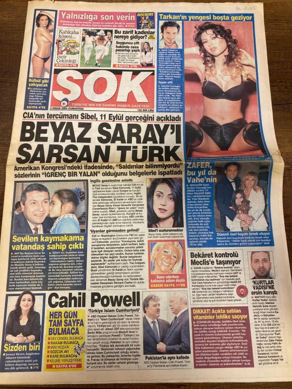 ŞOK GAZETESİ DOĞUM GÜNÜ HEDİYESİ - 3 NİSAN 2004 - TAM TAKIM 12 SAYFADIR - Sibel Edmonds-Tarkan-Adnan Tarkan-Enver Salihoğlu-Sennur Bişgen-Colin Powell-Abdullah Gül-Hakan Ünsal-Rivaldo-Zafer Hasek-Jordan-Elle McPherson-Bon Jovi-Romeo-Muharrem Köken-Murat Kabak-Adem Kabak-Aydan Kaya-Ursula Bornmann-Sibel’in susturulamadılar-Cahil Powell-Beyaz Saray’ı sarsan Türk-Sevilen kaymakama vatandaş sahip çıktı-Hakimle pazarlık-Vurulmayı hak ettim-Kız kardeşini rahatsız eden kişiye 7 kurşun sıktı-Eşeğin intikamı-Kurtlar Vadisi’nin yayını tehlikede-Bu pozlar işe yaradı-Dans ederken kafasına adam düştü-310 trilyonu beğenmedi-Jordan şarkıcı oluyor-Hayırsever Elle McPherson-Rivaldo’yu bitir-Devler bir yolunu bulur-Kadıköy’de şov günü-Beşiktaş biri yıldız çift forvet peşinde-Yeni başkanın ilk icraatı yapay ağaçları sökmek-New York’taki restoranların ilginç menüleri adlı eser, Kitap > Süreli Yayınlar > Gazeteler > Türkiye > Genel > Günlük kategorisinde İkinci El olarak satıştadır.