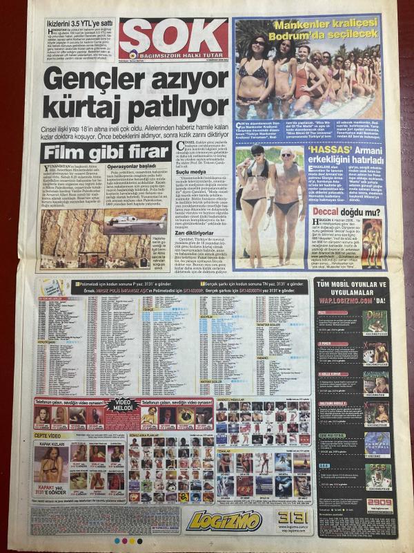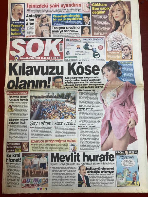 ŞOK GAZETESİ DOĞUM GÜNÜ HEDİYESİ - 6 HAZİRAN 2006 - TAM TAKIM 12 SAYFADIR -Erol Köse-Gökhan-Atıl Ural-Hakan Ural-Memati-Aliye-Özgün-Sabri Sarıoğlu-Keremcem-Yasemin Ergene-Paul McCartney-Heather Mills-Burcu Ayan-Haluk Ulusoy-Marco Aurelio-Emerson-Tolga Zengin-Bobo-Roberts-Hingis-Hüseyin Öztürk-Serenay Sarıkaya-Sabriye Sabancı-Fatma Şahin-Kılıçdaroğlu-Tuba Ünsal-Yavuz Seçkin-Serhat Tekin-Mehmet Ali Erbil-Şafak Karaman-Merve Sevi-Haluk Ulusoy-Hülya Avşar-Uğur Dündar-Antalya alev alev-Kılavuzu Köse olanın-Mevlit hurafe-Gençler azıyor kürtaj patlıyor-Film gibi firar-Namus katliamı-Cinselliğin olmadığı bir aşk yaşayabilirim-McCartney’ye porno şoku-Aurelio’dan daha iyisi var-Antalya alev alev-En kral hizmet-Suyu gören haber versin-Kavrucu sıcağa yağmur molası-Mevlit hurafe-Brezilya’da 15 bin şehvetli dansçı sahne aldı-Mankenler kraliçesi Bodrum’da seçilecek-Hassas Armani erkekliğini hatırlattı-Deccal doğdu mu-Cinselliğin olmadığı bir aşk yaşayabilirim-Bingöl’de hain saldırı 1 şehit-Ecstasy gü, Mustafa küçük tarafından kaleme alınmıştır. Kitap ABC Medya Ajansı tarafından yayınlanmıştır. 12 sayfadır. ŞOK GAZETESİ DOĞUM GÜNÜ HEDİYESİ - 6 HAZİRAN 2006 - TAM TAKIM 12 SAYFADIR -Erol Köse-Gökhan-Atıl Ural-Hakan Ural-Memati-Aliye-Özgün-Sabri Sarıoğlu-Keremcem-Yasemin Ergene-Paul McCartney-Heather Mills-Burcu Ayan-Haluk Ulusoy-Marco Aurelio-Emerson-Tolga Zengin-Bobo-Roberts-Hingis-Hüseyin Öztürk-Serenay Sarıkaya-Sabriye Sabancı-Fatma Şahin-Kılıçdaroğlu-Tuba Ünsal-Yavuz Seçkin-Serhat Tekin-Mehmet Ali Erbil-Şafak Karaman-Merve Sevi-Haluk Ulusoy-Hülya Avşar-Uğur Dündar-Antalya alev alev-Kılavuzu Köse olanın-Mevlit hurafe-Gençler azıyor kürtaj patlıyor-Film gibi firar-Namus katliamı-Cinselliğin olmadığı bir aşk yaşayabilirim-McCartney’ye porno şoku-Aurelio’dan daha iyisi var-Antalya alev alev-En kral hizmet-Suyu gören haber versin-Kavrucu sıcağa yağmur molası-Mevlit hurafe-Brezilya’da 15 bin şehvetli dansçı sahne aldı-Mankenler kraliçesi Bodrum’da seçilecek-Hassas Armani erkekliğini hatırlattı-Deccal doğdu mu-Cinselliğin olmadığı bir aşk yaşayabilirim-Bingöl’de hain saldırı 1 şehit-Ecstasy gü adlı eser Türkçe dilindedir.