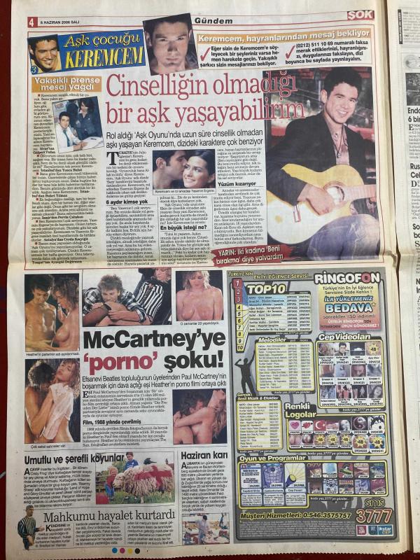 ŞOK GAZETESİ DOĞUM GÜNÜ HEDİYESİ - 6 HAZİRAN 2006 - TAM TAKIM 12 SAYFADIR -Erol Köse-Gökhan-Atıl Ural-Hakan Ural-Memati-Aliye-Özgün-Sabri Sarıoğlu-Keremcem-Yasemin Ergene-Paul McCartney-Heather Mills-Burcu Ayan-Haluk Ulusoy-Marco Aurelio-Emerson-Tolga Zengin-Bobo-Roberts-Hingis-Hüseyin Öztürk-Serenay Sarıkaya-Sabriye Sabancı-Fatma Şahin-Kılıçdaroğlu-Tuba Ünsal-Yavuz Seçkin-Serhat Tekin-Mehmet Ali Erbil-Şafak Karaman-Merve Sevi-Haluk Ulusoy-Hülya Avşar-Uğur Dündar-Antalya alev alev-Kılavuzu Köse olanın-Mevlit hurafe-Gençler azıyor kürtaj patlıyor-Film gibi firar-Namus katliamı-Cinselliğin olmadığı bir aşk yaşayabilirim-McCartney’ye porno şoku-Aurelio’dan daha iyisi var-Antalya alev alev-En kral hizmet-Suyu gören haber versin-Kavrucu sıcağa yağmur molası-Mevlit hurafe-Brezilya’da 15 bin şehvetli dansçı sahne aldı-Mankenler kraliçesi Bodrum’da seçilecek-Hassas Armani erkekliğini hatırlattı-Deccal doğdu mu-Cinselliğin olmadığı bir aşk yaşayabilirim-Bingöl’de hain saldırı 1 şehit-Ecstasy gü adlı eser, Kitap > Süreli Yayınlar > Gazeteler > Türkiye > Genel > Günlük kategorisinde İkinci El olarak satıştadır.