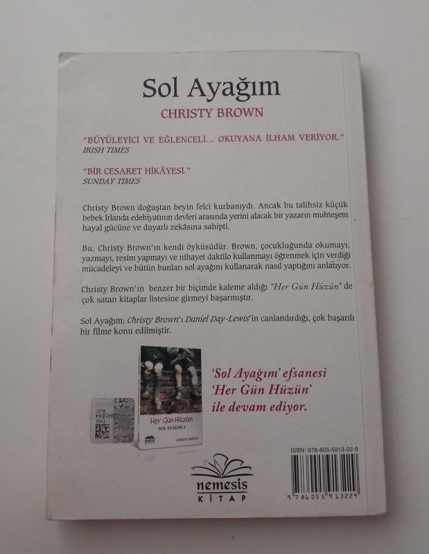 SOL AYAĞIM CHRİSTY BROWN İKİNCİ EL KİTAP KONDİSYON YÜKSEK, CHRİSTY BROWN tarafından kaleme alınmıştır. Kitap 2013 yılında NEMESİS KİTAP tarafından yayınlanmıştır. Satışta olan kitap, yayınevinin 3. baskısıdır. SOL AYAĞIM CHRİSTY BROWN İKİNCİ EL KİTAP KONDİSYON YÜKSEK adlı eser Türkçe dilindedir.