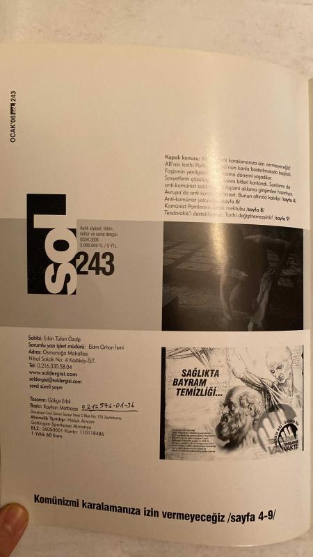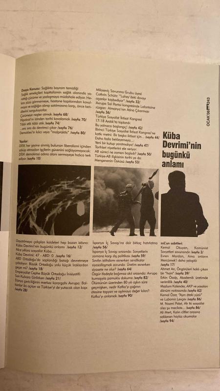 SOL AYLIK SİYASET, BİLİM, KÜLTÜR VE SANAT DERGİSİ - OCAK 2006 SAYI: 243 KEMAL OKUYAN - EVREN MARDAN - AHMET AN - ERKİN ÖZALP - MAZLUM KALENDER - KEMAL ÖZER - M. NAZMİ POLAT - ALİ MERT - OSMAN BAYRAKTAR - ALİ HAYDAR HAKSAL - M. ORHAN OKAY - RAMAZAN KAPLAN - YAVUZ DEMİR - HASAN AYCIN - SEYFETTİN ÜNLÜ - FARUK UYSAL - HASAN AKAY - RIZA DURU - SÜLEYMAN ÇELİK - ÖMER ERDOĞAN - AHMET HAMİT YILDIZ - HAMDİ ORUÇ - SADIK BATTAL - YÜKSEL PEKER - KEMALETTİN ÇALIK - DURSUN ALİ TOKEL - MUSTAFA S. KAÇALİN - AHMET İŞLER - HASAN KOLCU - EROL KILIÇ - ADNAN AKGÜN - AHMET NEDİM KOMÜNİZMİ KARALAMANIZA İZİN VERMEYECEĞİZ - SAĞLIKTA BAYRAM TEMİZLİĞİ - DİSK VE LİBERALİZM - TÜRKİYE SOSYALİST İKTİSAT KONGRESİ - BİR BAŞKA İKTİSAT İÇİN - YENİ BİR KUTUP YARATMALIYIZ - AB SÜRECİ VE TARİHİ - MENGENENİN ÖYKÜSÜ - KÜBA DEVRİMİ’NİN BUGÜNKÜ ANLAMI - KÜBA DEVRİMİ: 47 - ABD: 0 - BÜYÜK ORTADOĞU YOLU - EMPERYALİST CEPHE VE BOP - AVRUPA’DA TARİH TERÖRÜ - İSPANYA İÇ SAVAŞI - SOVYETLERİN DIŞ POLİTİK - TAM TAKIM EKSİKSİZ 96 SAYFA, ERKİN TUFAN ÖZALP tarafından kaleme alınmıştır. Eser EKİM ORHAN İSMİ editörlüğünde hazırlanmıştır. SOL AYLIK SİYASET, BİLİM, KÜLTÜR VE SANAT DERGİSİ - OCAK 2006 SAYI: 243 KEMAL OKUYAN - EVREN MARDAN - AHMET AN - ERKİN ÖZALP - MAZLUM KALENDER - KEMAL ÖZER - M. NAZMİ POLAT - ALİ MERT - OSMAN BAYRAKTAR - ALİ HAYDAR HAKSAL - M. ORHAN OKAY - RAMAZAN KAPLAN - YAVUZ DEMİR - HASAN AYCIN - SEYFETTİN ÜNLÜ - FARUK UYSAL - HASAN AKAY - RIZA DURU - SÜLEYMAN ÇELİK - ÖMER ERDOĞAN - AHMET HAMİT YILDIZ - HAMDİ ORUÇ - SADIK BATTAL - YÜKSEL PEKER - KEMALETTİN ÇALIK - DURSUN ALİ TOKEL - MUSTAFA S. KAÇALİN - AHMET İŞLER - HASAN KOLCU - EROL KILIÇ - ADNAN AKGÜN - AHMET NEDİM KOMÜNİZMİ KARALAMANIZA İZİN VERMEYECEĞİZ - SAĞLIKTA BAYRAM TEMİZLİĞİ - DİSK VE LİBERALİZM - TÜRKİYE SOSYALİST İKTİSAT KONGRESİ - BİR BAŞKA İKTİSAT İÇİN - YENİ BİR KUTUP YARATMALIYIZ - AB SÜRECİ VE TARİHİ - MENGENENİN ÖYKÜSÜ - KÜBA DEVRİMİ’NİN BUGÜNKÜ ANLAMI - KÜBA DEVRİMİ: 47 - ABD: 0 - BÜYÜK ORTADOĞU YOLU - EMPERYALİST CEPHE VE BOP - AVRUPA’DA TARİH TERÖRÜ - İSPANYA İÇ SAVAŞI - SOVYETLERİN DIŞ POLİTİK - TAM TAKIM EKSİKSİZ 96 SAYFA adlı eser Türkçe dilindedir.